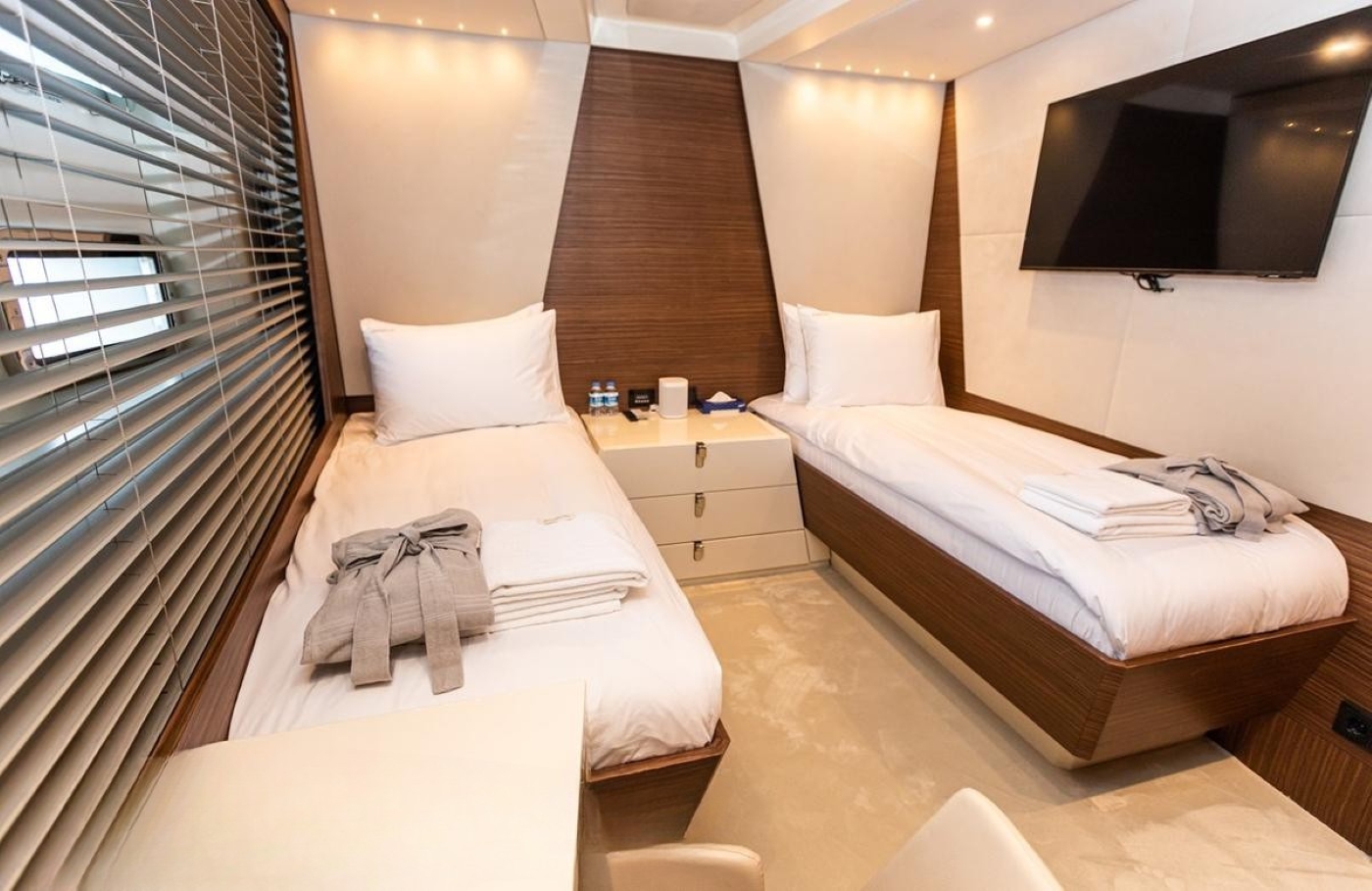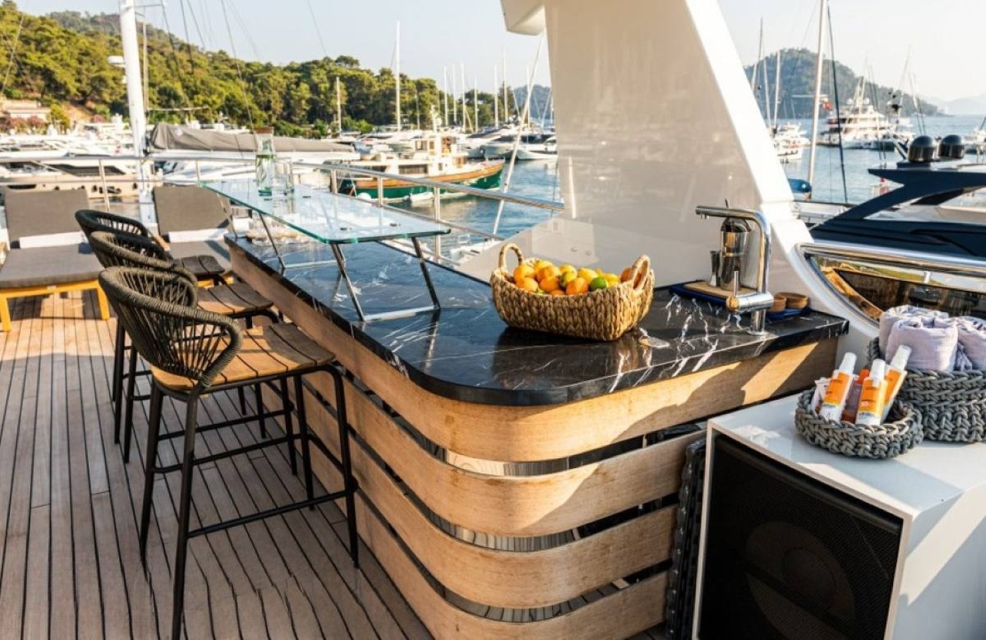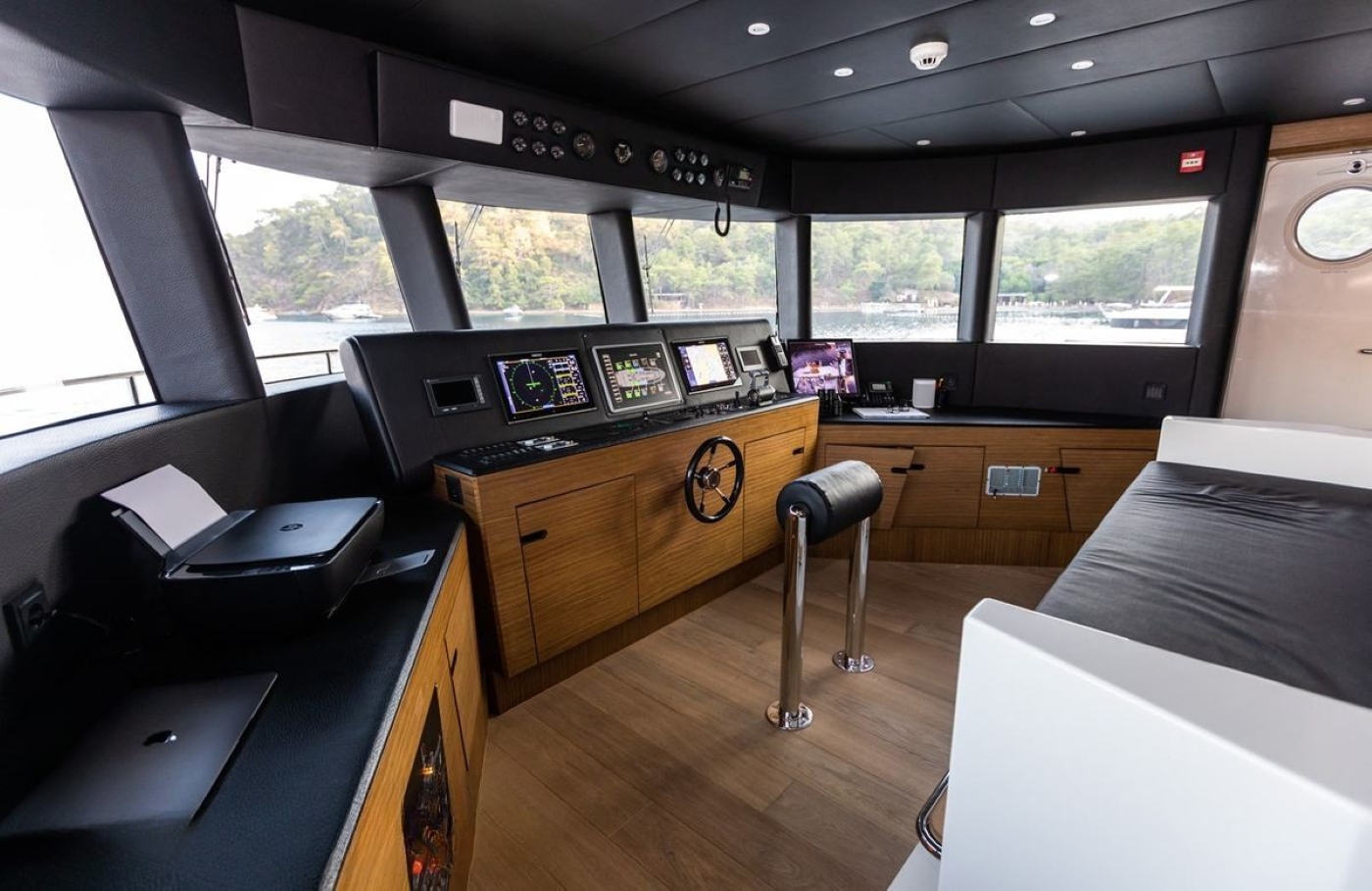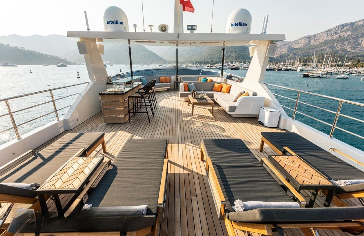 NOTABLE FEATURES OF ZEEMAR: ~Tri-deck design ~Contemporary deck furnishings ~Stylish interior ~Main deck master ~At anchor and underway stabilisers ~Air conditioning ~WiFi