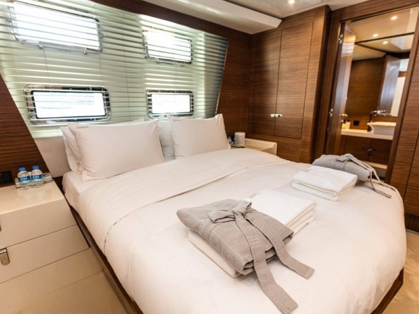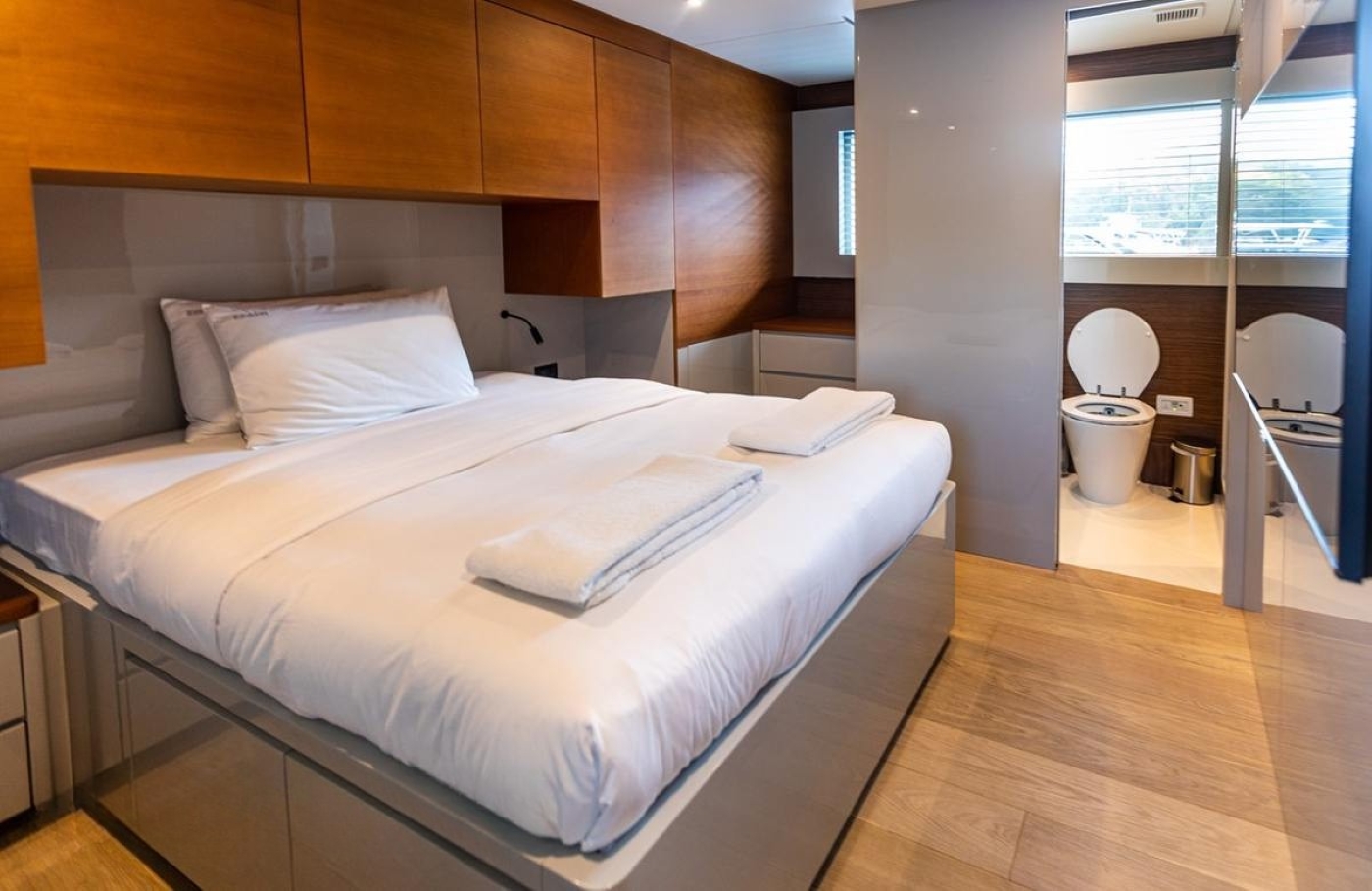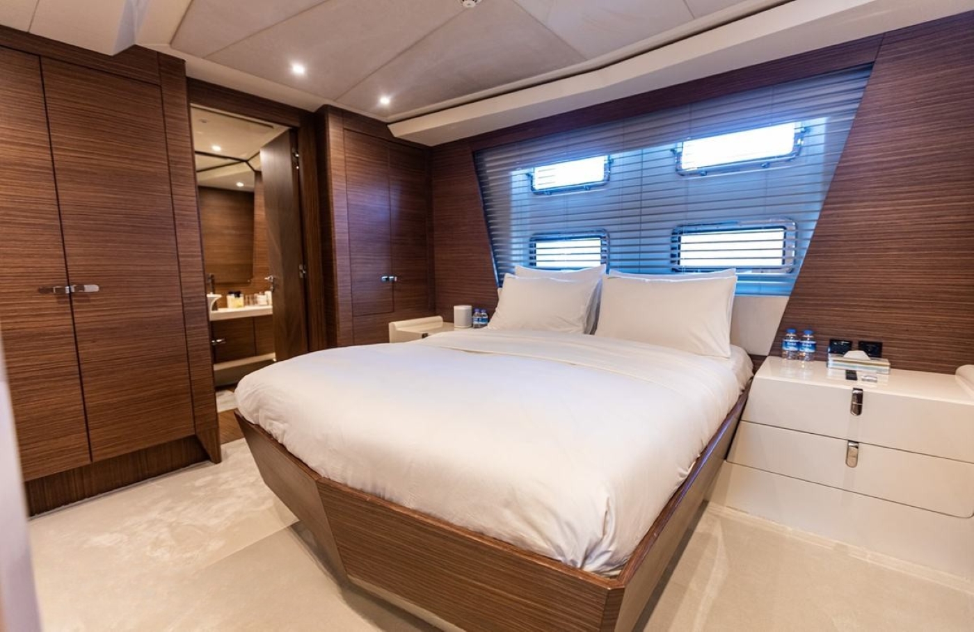 The layout also affords a sky lounge perfect for late night drinks or movie night. Forward on the upper deck is the captain’s accommodation which is adjacent to the wheelhouse.