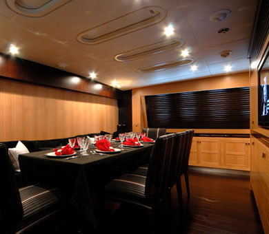 Motor yacht ANITA has a Master queen size room with bathroom, a VIP queen size room with bathroom, Double cabin with bathroom and Twin cabin with pullman and bathroom.
