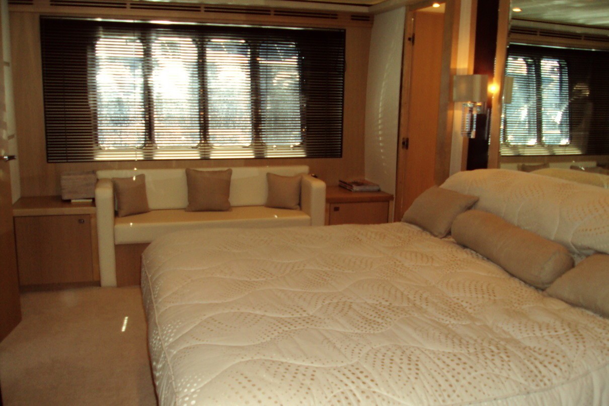 Overnight accommodation onboard motor yacht BAGGIO is situated on the lower deck and includes a full beam owner’s stateroom amidships, complete with a walk-in wardrobe and an en-suite bathroom. There is also a VIP stateroom and a twin cabin. M/Y BAGGIO’s guest accommodation is fitted to the highest standard and each cabin boasts en-suite facilities with stall showers and plenty of natural light and are fully air conditioned.