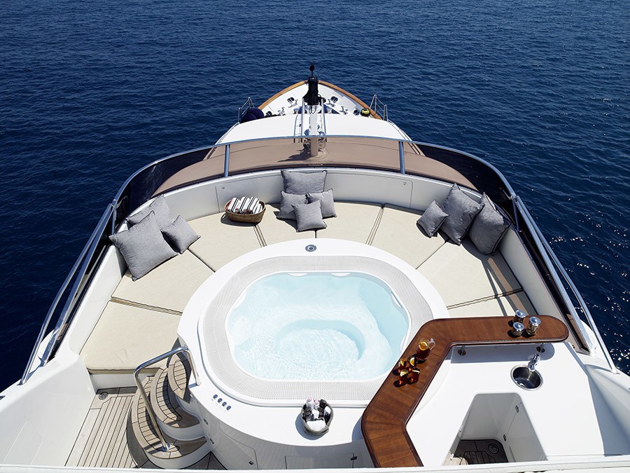 BUNTY is equipped with state-of-the-art entertainment systems. There is a Spa Pool on her sun deck, a large array of water toys and zero-speed stabilizers.