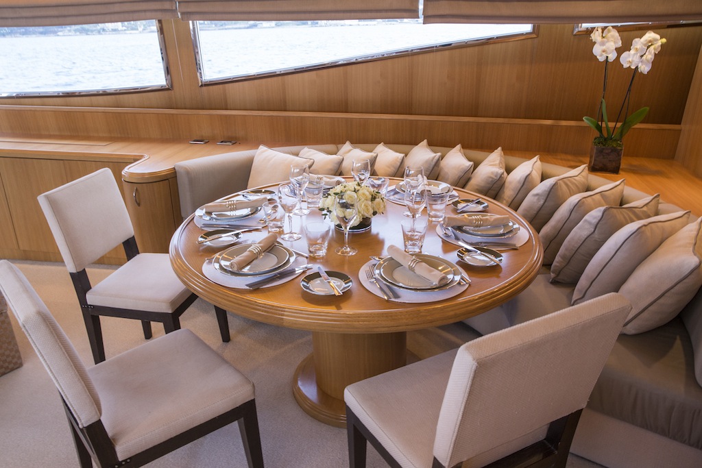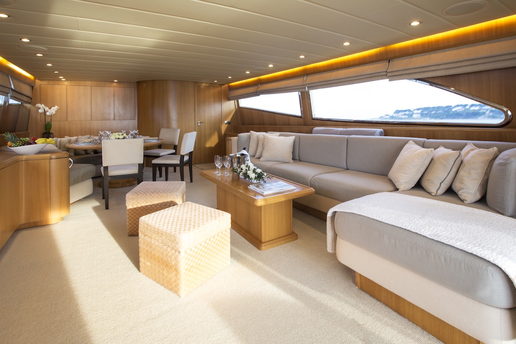 Motor yacht LITTLE JEMS is functional yet elegant in design with excellent space and entertainment features inside and out. Her open style salon and dining is elegantly furnished in modern neutral colours and is filled with natural light from the wide panoramic windows. Indoor entertainment is provided in the main salon including a 120cm Plasma Screen TV and a Crestron Entertainment system.