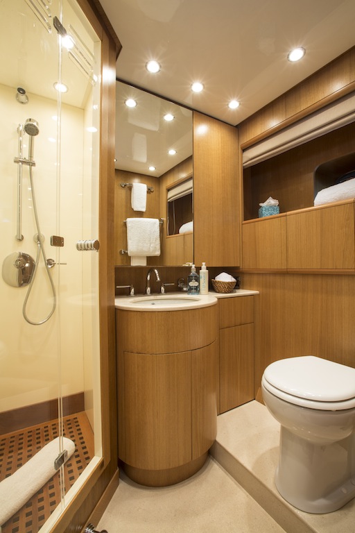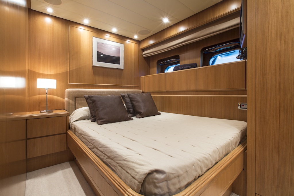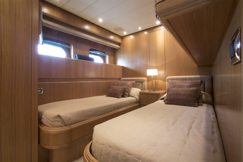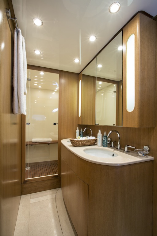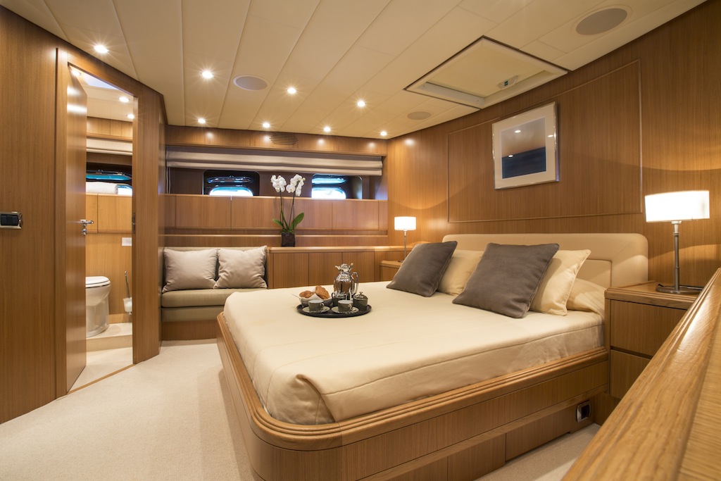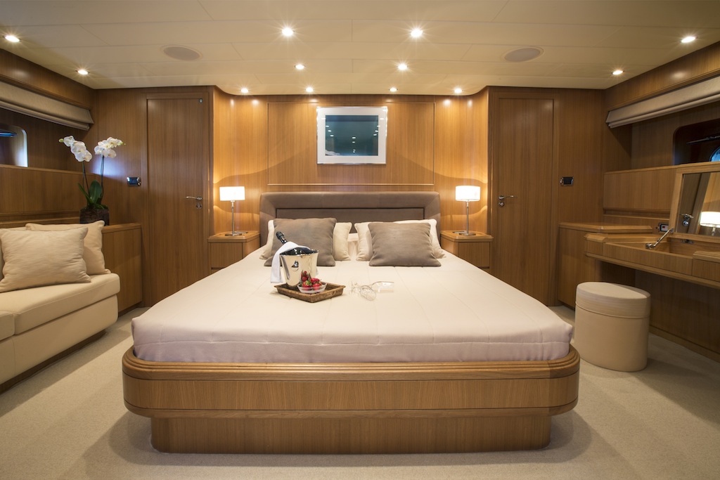 The Leopard Motor Yacht LITTLE JEMS accommodates up to eight guests in three double cabins and one twin. Each cabin is elegantly appointed and each has a private ensuite bathroom.