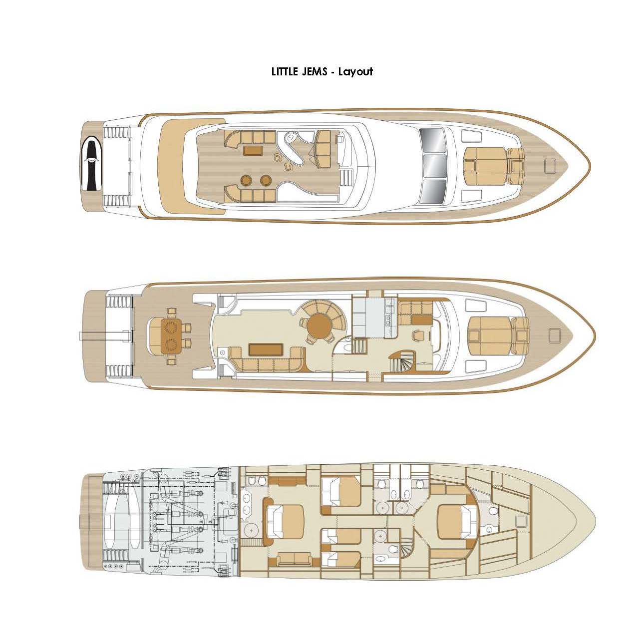 The luxury yacht LITTLE JEMS displayed on this page is merely informational and she is not necessarily available for yacht charter or for sale, nor is she represented or marketed in anyway by CharterWorld. This web page and the superyacht information contained herein is not contractual. All yacht specifications and informations are displayed in good faith but CharterWorld does not warrant or assume any legal liability or responsibility for the current accuracy, completeness, validity, or usefulness of any superyacht information and/or images displayed. All boat information is subject to change without prior notice and may not be current.