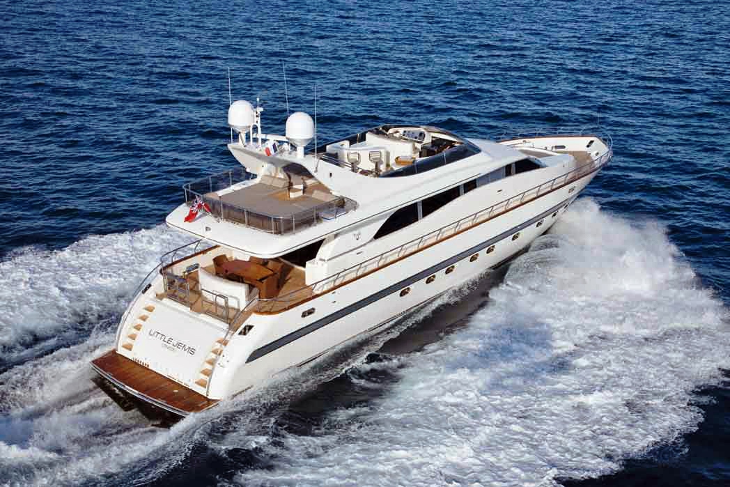 Luxury Motor Yacht LITTLE JEMS is an 85ft Leopard (Arno) Flybridge style motor yacht built in Italy and launched in 2004. LITTLE JEMS has a composite planning hull and a powerful engine allowing her cruising speeds of 23 to 27 knots.
