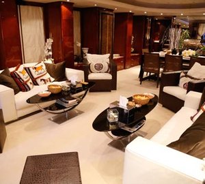 LOR has a very modern design. She is contemporary and elegant with chocolate and white interior textiles. Her exterior is features a black sleek stripe where her main deck windows sit, along with Black cushions and white hull. LOR boasts a Spa Pool and bar on the sun deck along with sunbeds and a HiFi with Ipod. On the yachts Main deck, her salon boasts a 105cm Plasma TV, Wifi, Ipod station, Play Station 3, and HiFi audio. Her dining room adjoins the salon.
