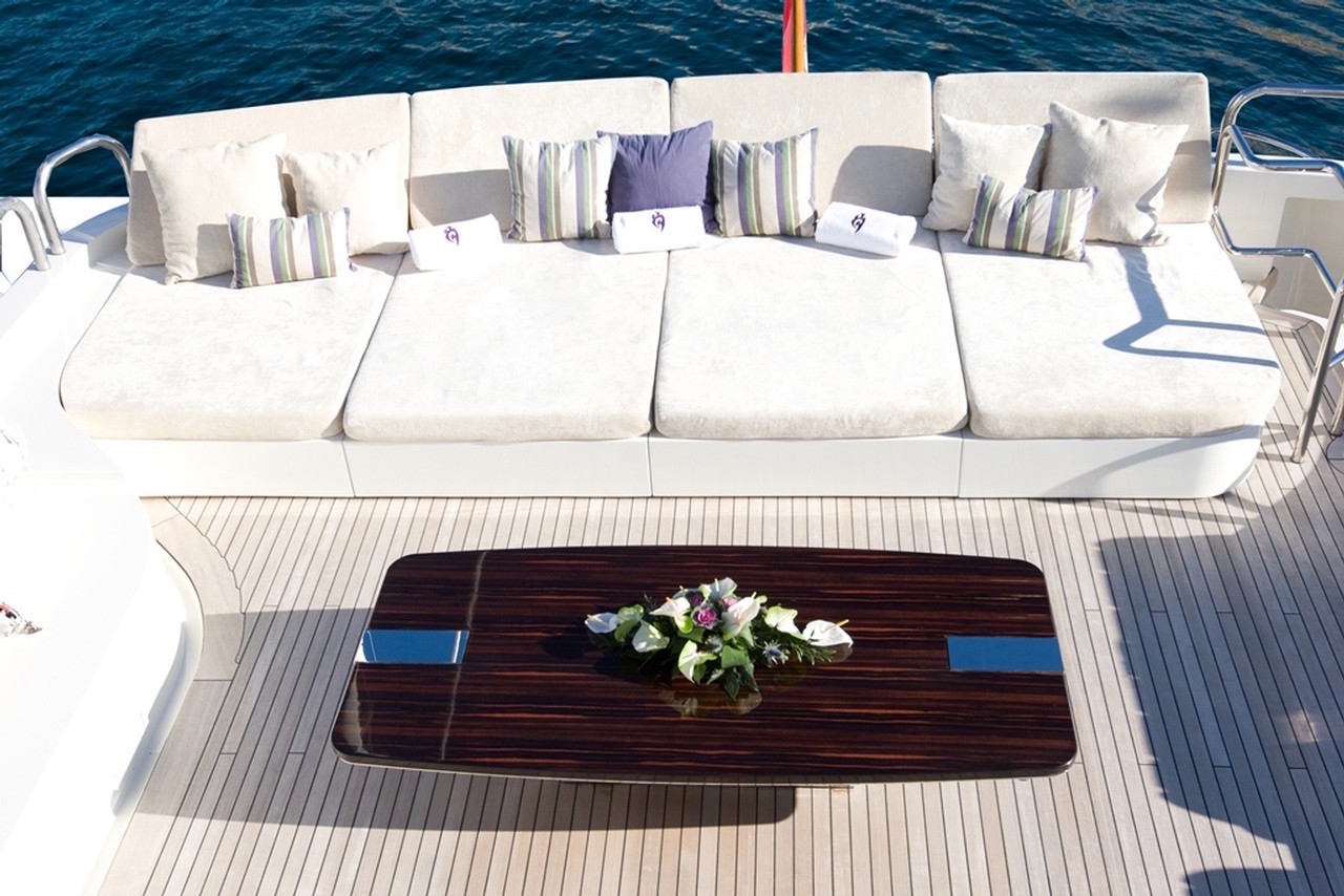 She offers a variety of options for dining: there are alfresco dining areas on the bridge deck and sundeck, as well as a large dining table in the main salon. The main deck bar is ideal for enjoying some cocktails and socialising.