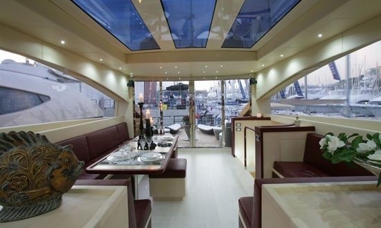 The photo of the yacht’s interior are of a sister ship, however, there will be very little difference between the two.