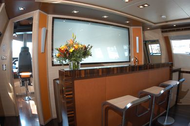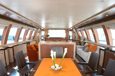The interior layout of the Palmer Johnson 120 is user friendly and intelligent with ample head room and wide panoramic windows which provide plenty of natural light. The yacht salon is magnificent including lounge and interior dining which flow onto the deck where additional relaxation and entertainment areas exist.