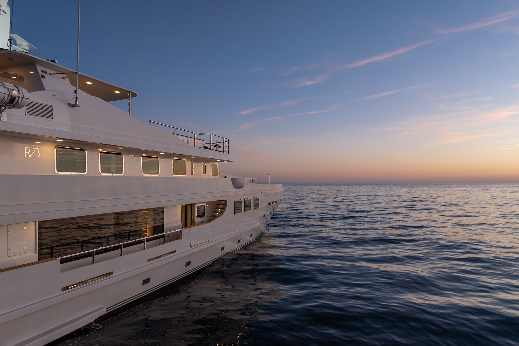 Motor yacht R23 (ex OUT, ICE) is a 49.00m (160' 9") long AMTEC luxury yacht which was launched in 2002, while in 2019 received a complete extensive refit and in 2024 last refit. She is available for luxury yacht charters for up to 12 guests in 6 cabins.