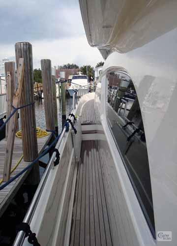 The Flybridge has a Bimini top, large table and settee to Starboard as well as a wet bar with sink, refrigerator, icemaker and electric grill. There is also a Helmstation located on the top deck. Her Forward Deck offers an additional area for sunbathing forward.