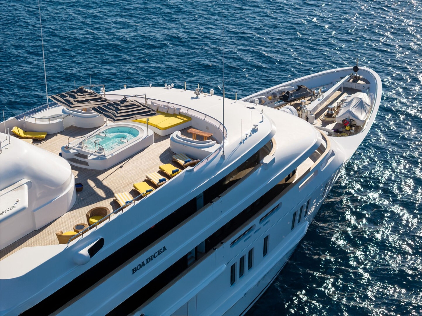 Motor yacht BOADICEA is a 76.6m (251' 4") Amels superyacht which was launched in 1999 and has since been beautifully refitted in 2024. She can accommodate up to 18 guests in 9 well appointed cabins.