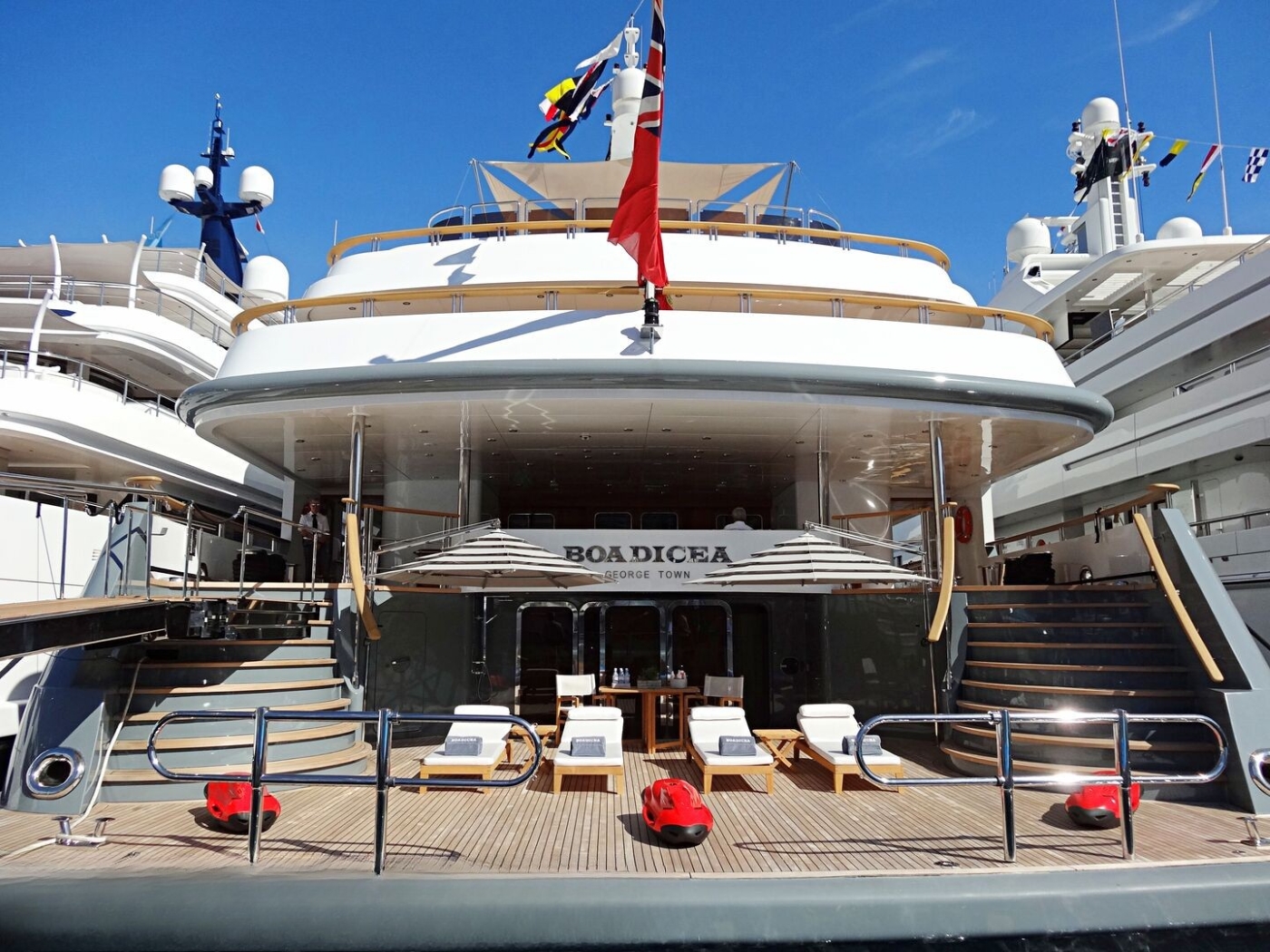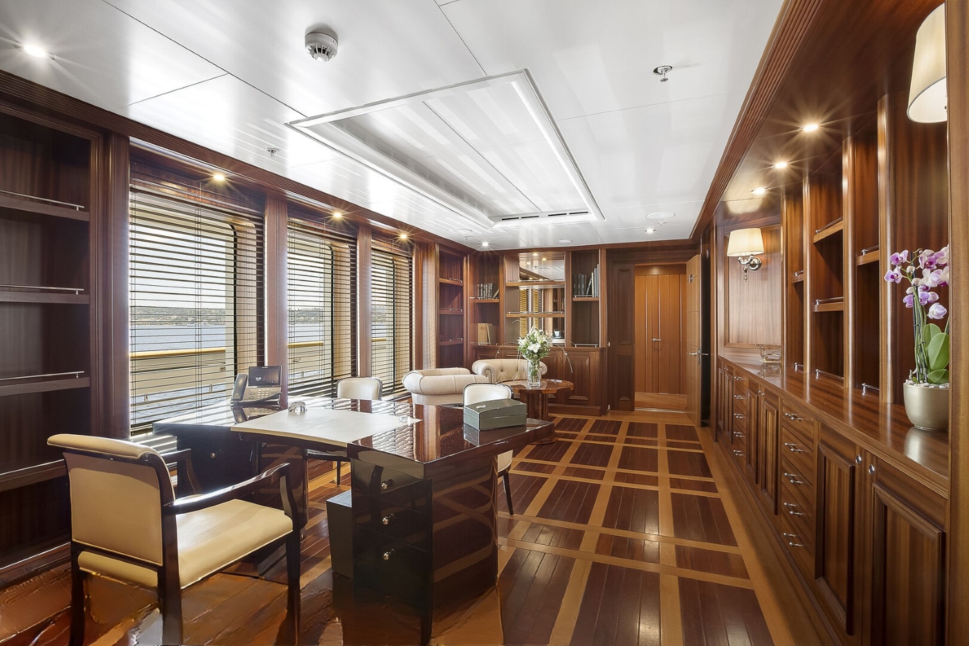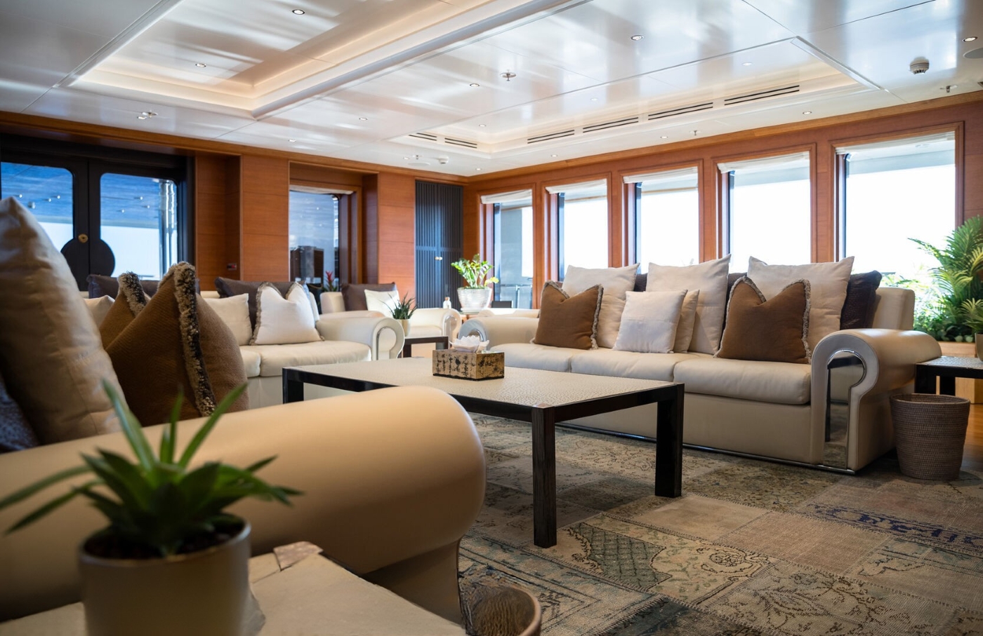 BOADICEA offers a very large amount of space with here huge 76 metres length and her 14 metre beam width. There are many completely different areas to be enjoyed and to entertain in. Her vast deck space leads into interiors with massive amounts of volume and every imaginable amenity, from cinema and theatre, to spa and beach club – even a doctor’s cabin and medical room.