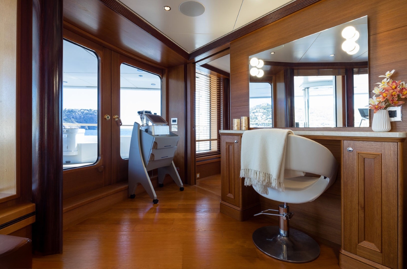 NOTABLE FEATURES: ~Deck Jacuzzi ~Large beach club ~Gym/exercice equipment ~Lift ~Double height salon ~Beauty, Massage and hairdressing salon ~Swimming pool with jet-stream on sun deck ~Spa facility ~14 seat Cinema ~Theatre ~Medical room & Doctor's cabin ~Vast swim platform ~Stabilizers underway ~Helicopter landing pad ~Wheelchair friendly