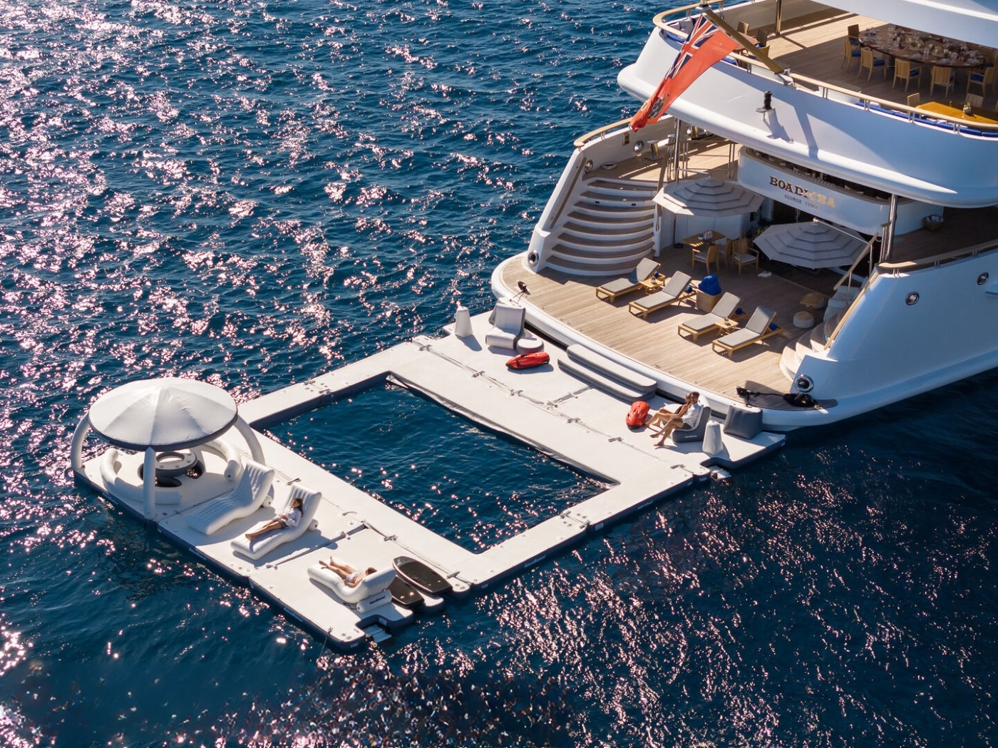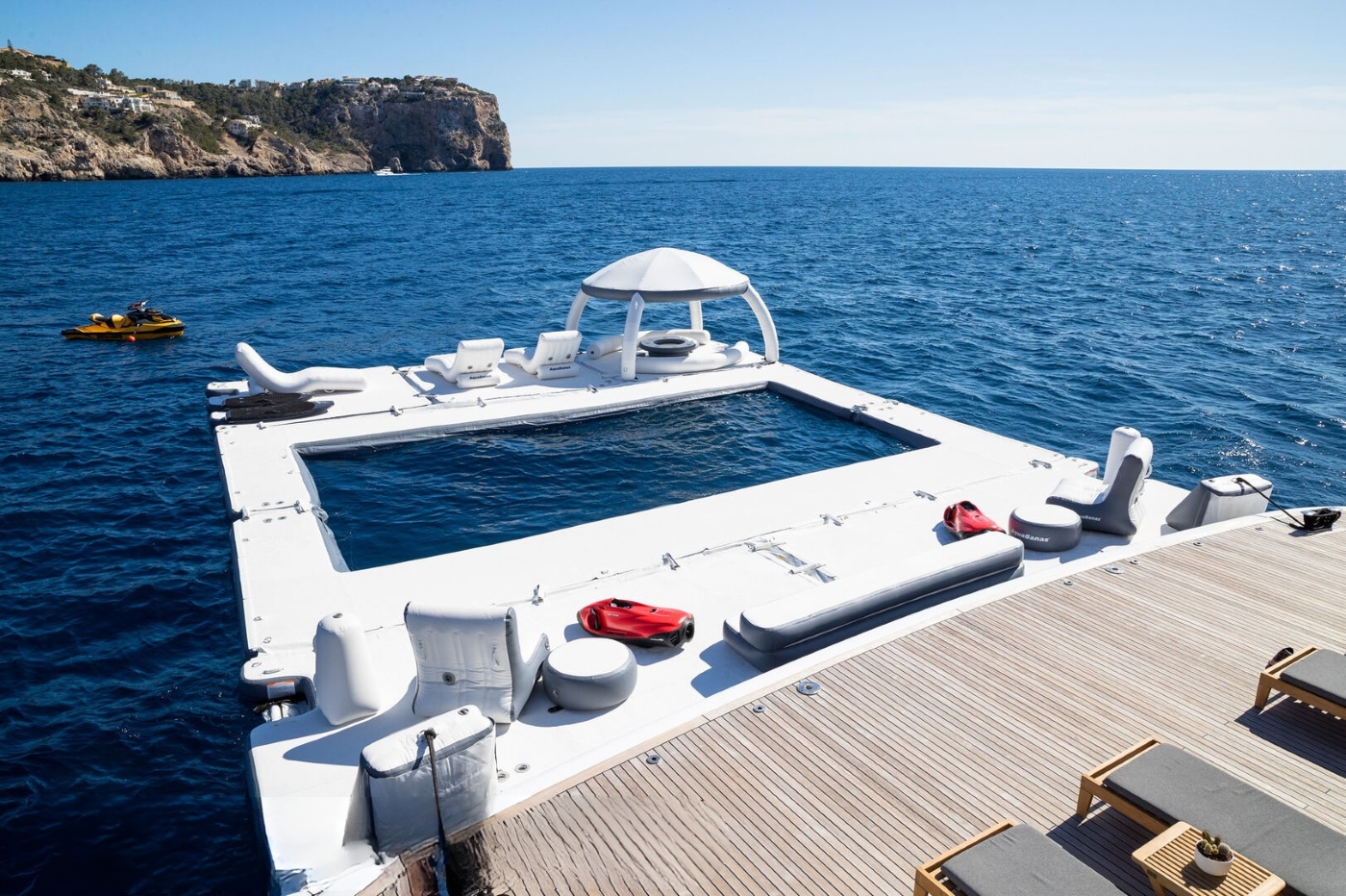 Tender & Toys Certified RYA Training Centre TENDERS: ~ Pirelli (42ft / 13m) Chase Boat - TO BE CONFIRMED ~ 2 x D6-400 DPH Volvo Penta engines ~ Top speed 45knots ~ A/C in lower deck cabin, shower, sink & toilet ~ Fridge and icemaker ~ Stereo system with speakers ~ Yachtwerft (30ft / 6.7m) Open Tender ~ Stereo system with speakers ~ Swim platform with ladder and shower ~ Castoldi (18ft / 5.5m) Jet Tender TOYS: ~ AquaBanas sea pool and floating platforms with integrated watertoy docks (10.2m x 13m), as well as sunloungers, sofas, and even a cabana! ~ Aquaglide sea trampoline ~ 2 x E-foils ~ 3 x Jetskis (2 Seadoos + 1 Waverunner) ~ 2 x Seabobs F5 ~ 2 x Stand-Up Paddleboards (inflatable) ~ 2 x Kayaks (inflatable) ~ 2 x Wakeboards ~ 2 x Waterskis ~ Various inflatable towables ~ Snorkelling equipment ~ Full beach setup