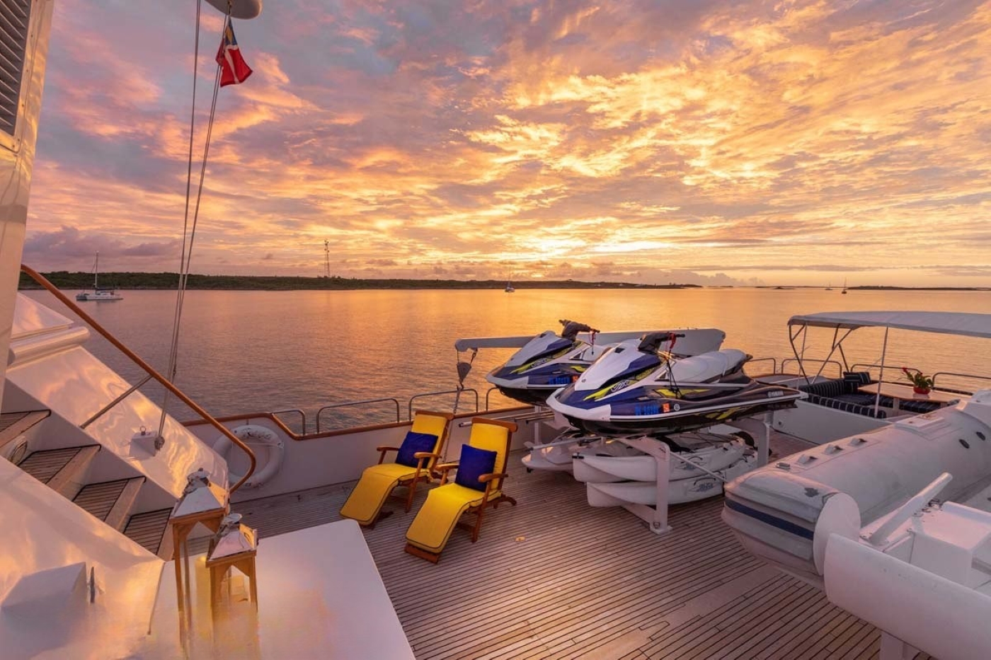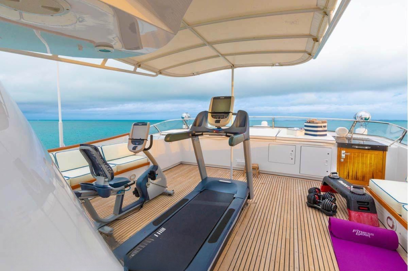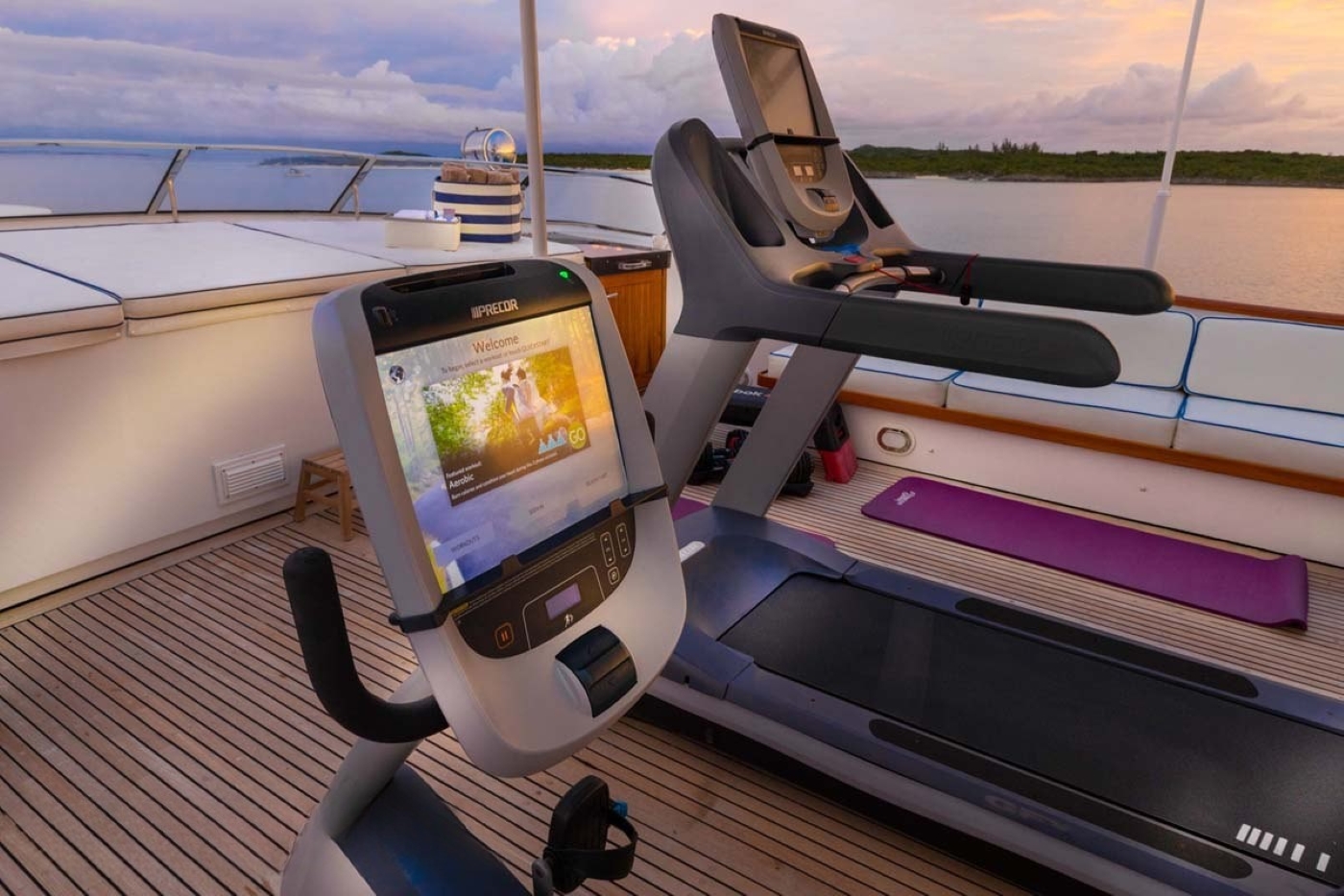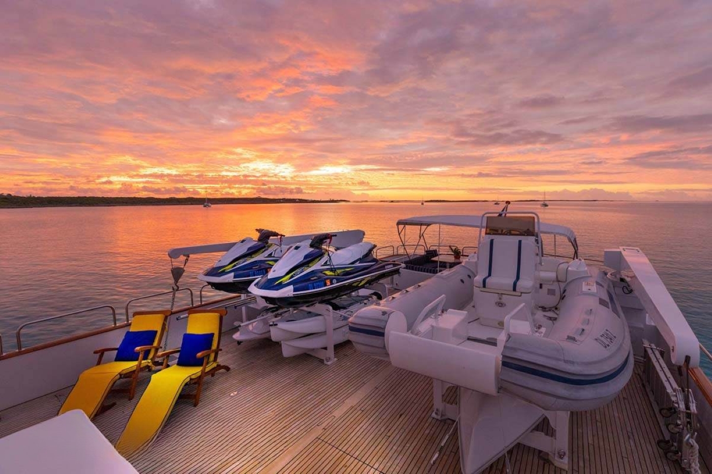 Tender & Toys ~All water equipment is sparkling new! ~35” HBI Custom Yacht Limo- accocomdates 12 guests w/ twin 250hp and guest head. ~17’ Nautical Catamaran landing craft with 115’hp Fantastic for landing on beach. ~2 Yamaha three man Wave runners (can be toned down for kids) ~2 Hobbies Mirage Kayaks with optional pedal devices ~1 Vanguard Zuma sailing dinghies (Race course available for the more competitive sailor) ~2 Paddle boards ~Snorkel Gear ~Wake board ~Towing ring Water skis ~Tread mill ~Exercise bike ~New outrigger trolling rigs on the large tender and a complete new set of Shimano light tackle (2x20lb and 2 x 30lb) ~Rod and reel sets ~And anything else one requires!