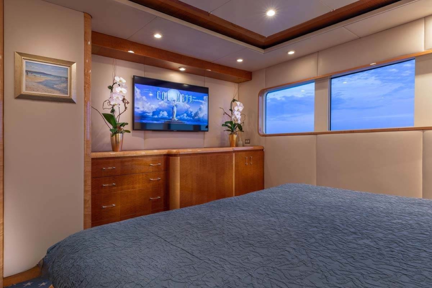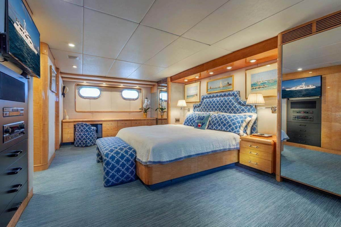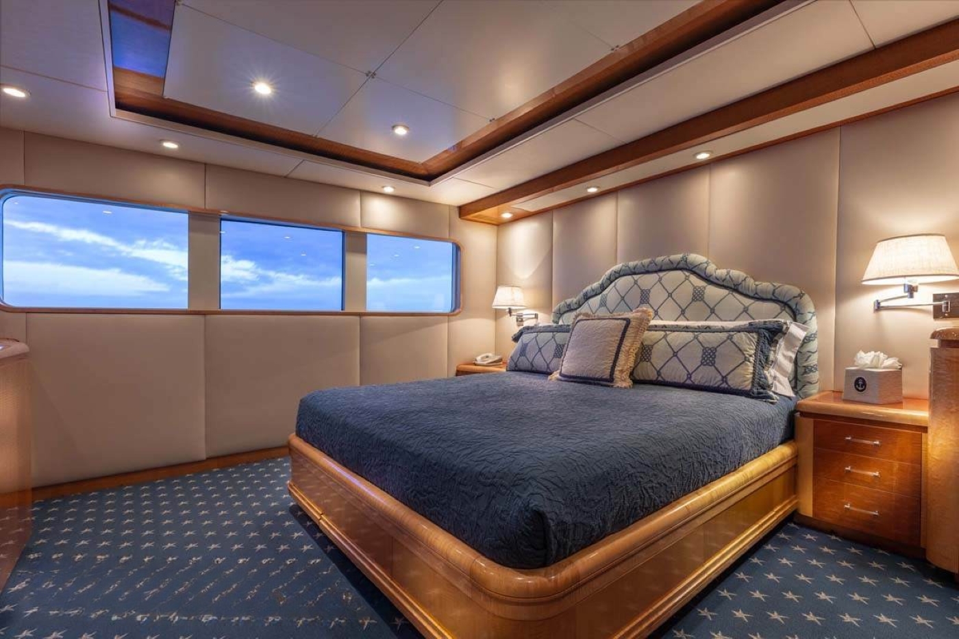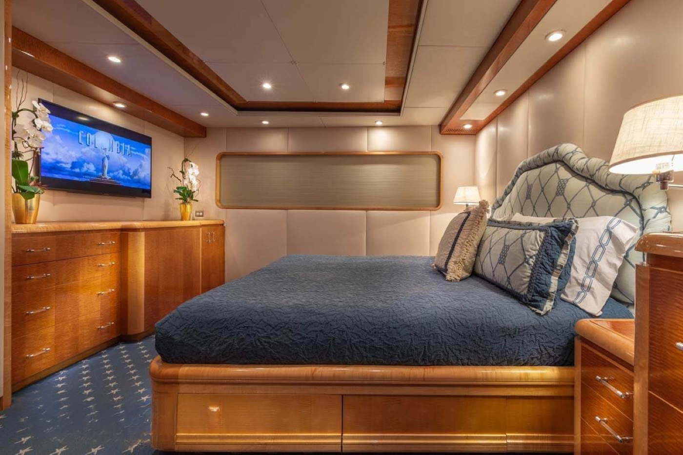 This motor yacht has a quiet elegance inside and a relaxing atmosphere. Features of her interior include a full-beam saloon, dining saloon, and spacious dining room.