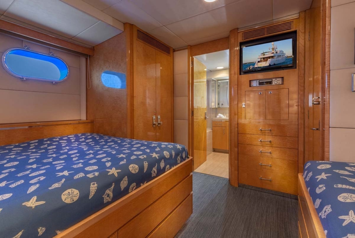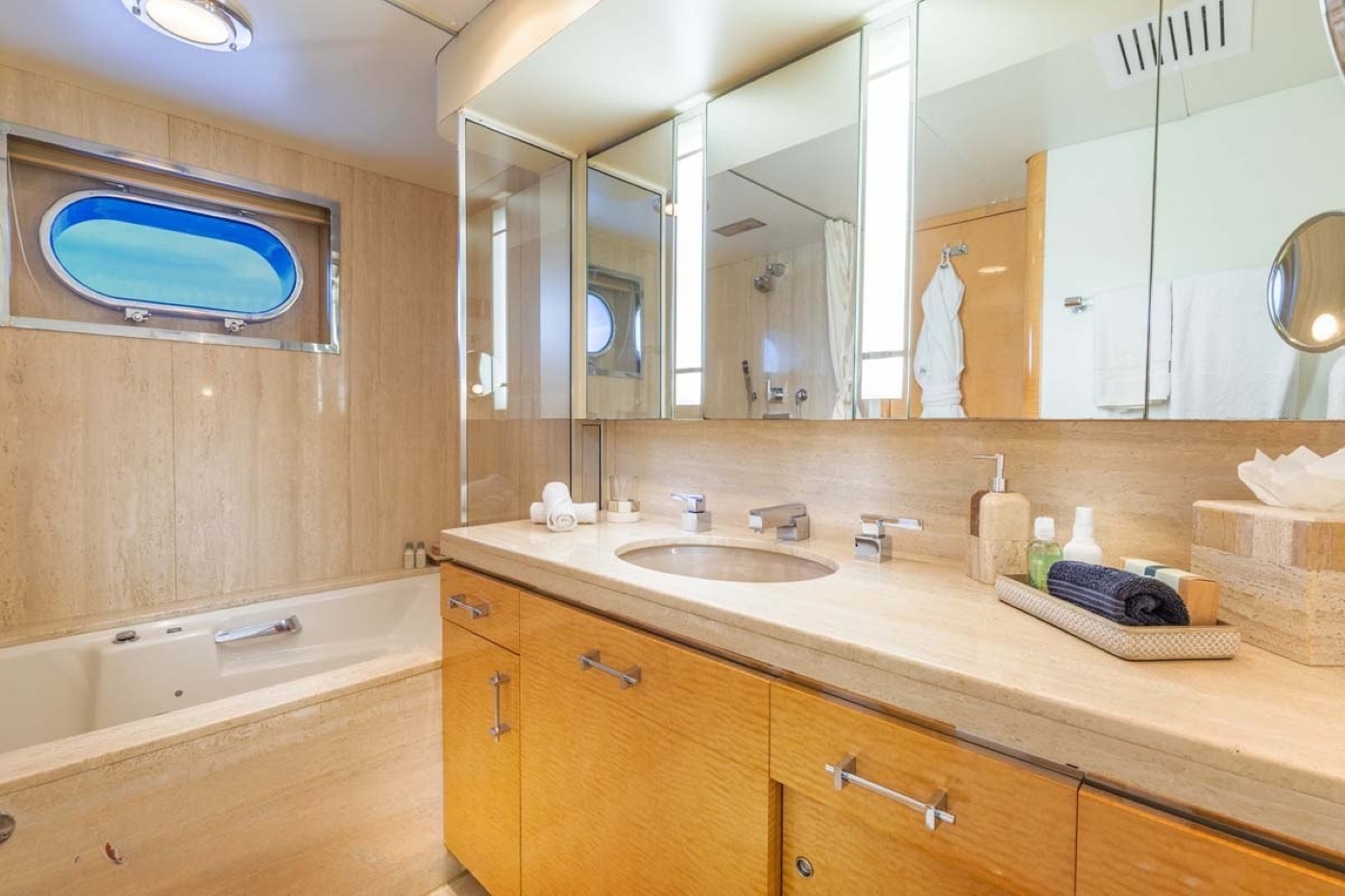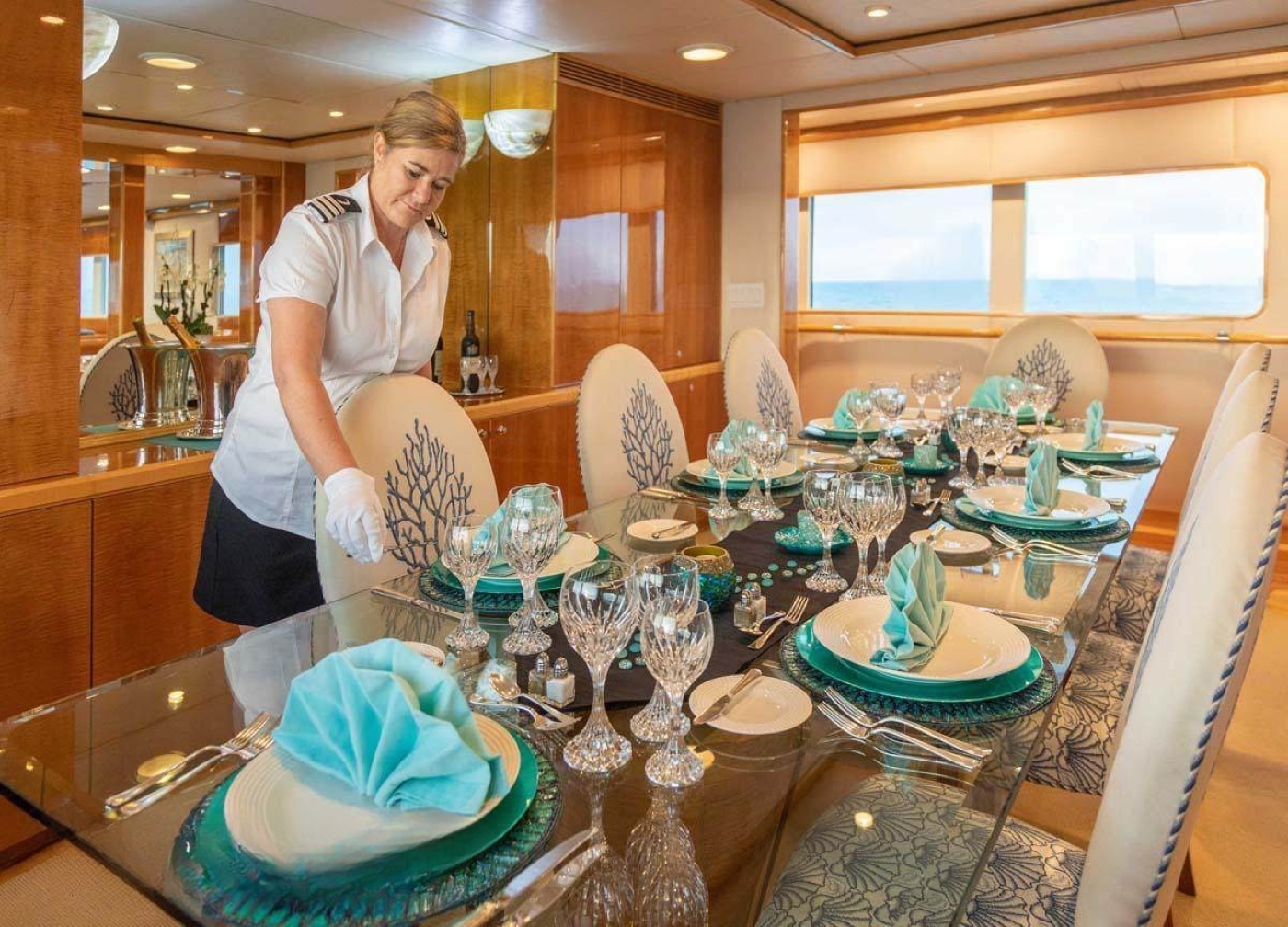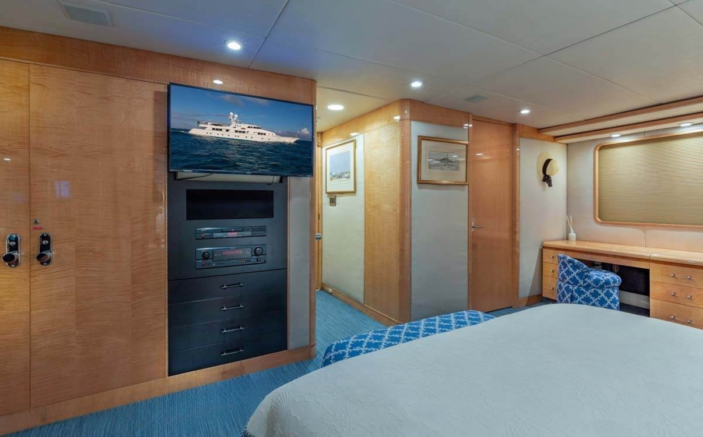 This displacement superyacht can accommodate 10 to 12 guests in five beautiful staterooms, all of which have their own ensuite bathrooms and private Spa Pools bathtubs. The staterooms also boast good entertainment centres, including flat-screen satellite TV, DVD and CD player as well as iPod-friendly connections.