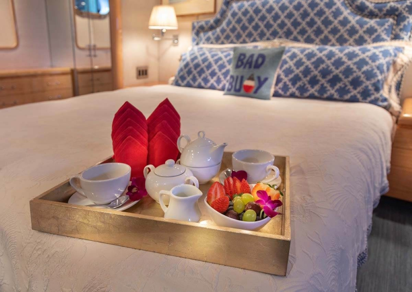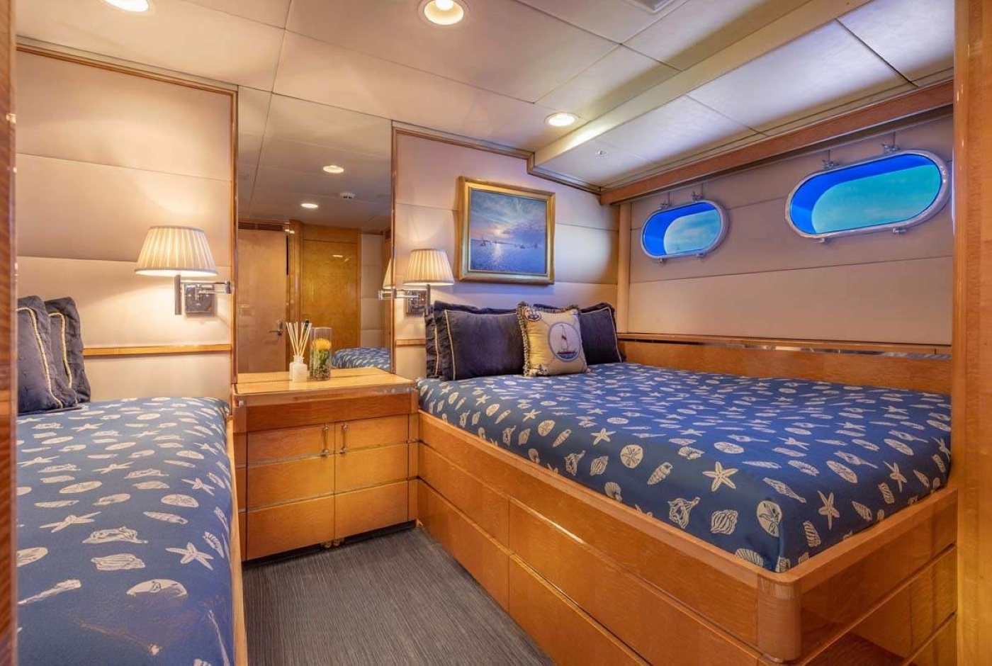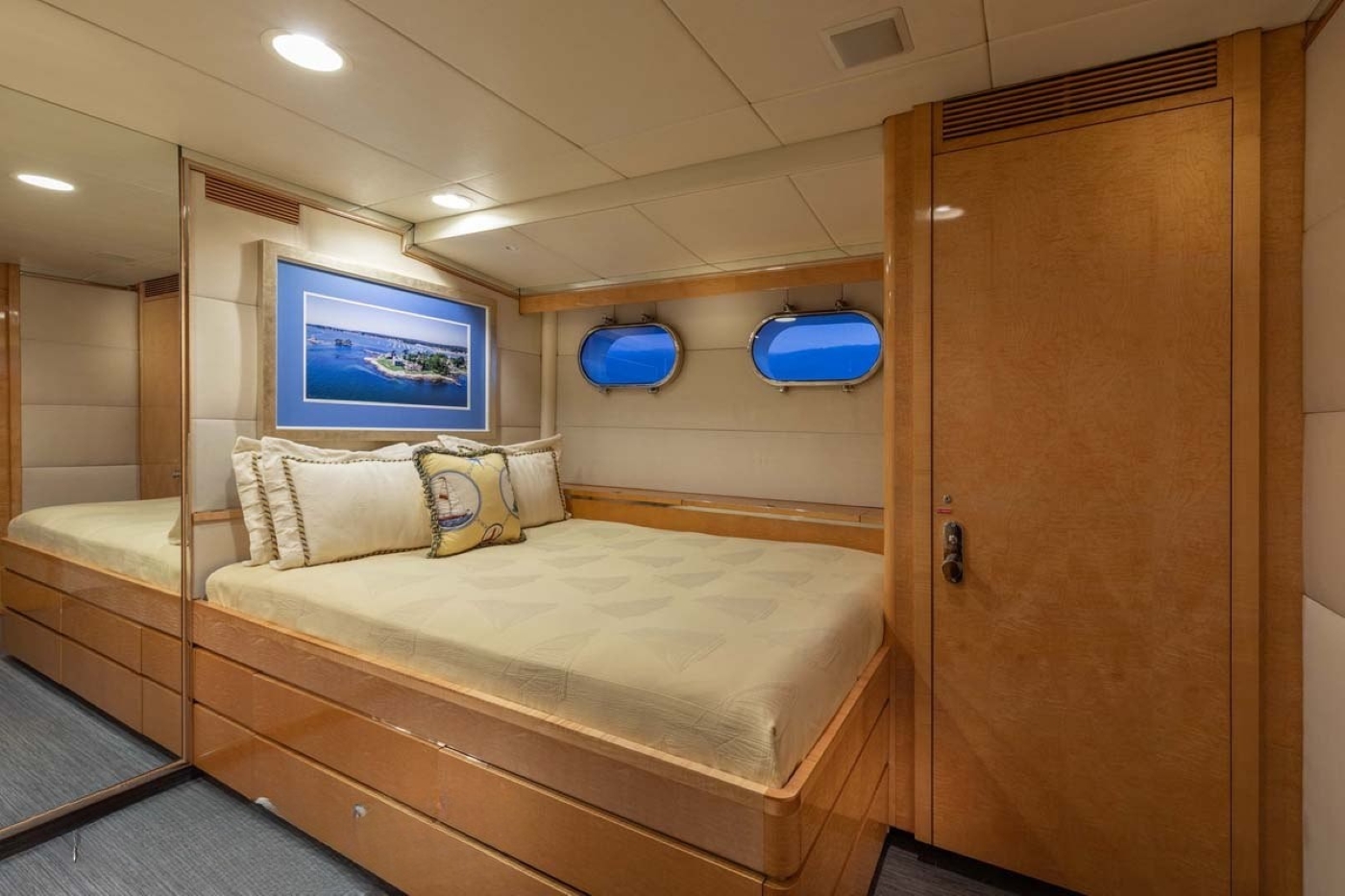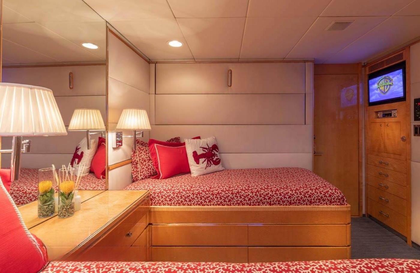 This displacement superyacht can accommodate 10 to 12 guests in five beautiful staterooms, all of which have their own ensuite bathrooms and private Spa Pools bathtubs. The staterooms also boast good entertainment centres, including flat-screen satellite TV, DVD and CD player as well as iPod-friendly connections.