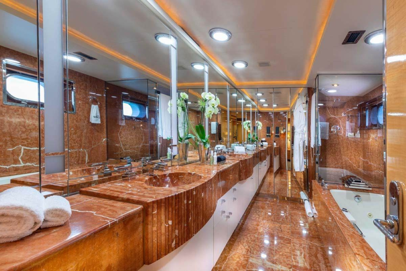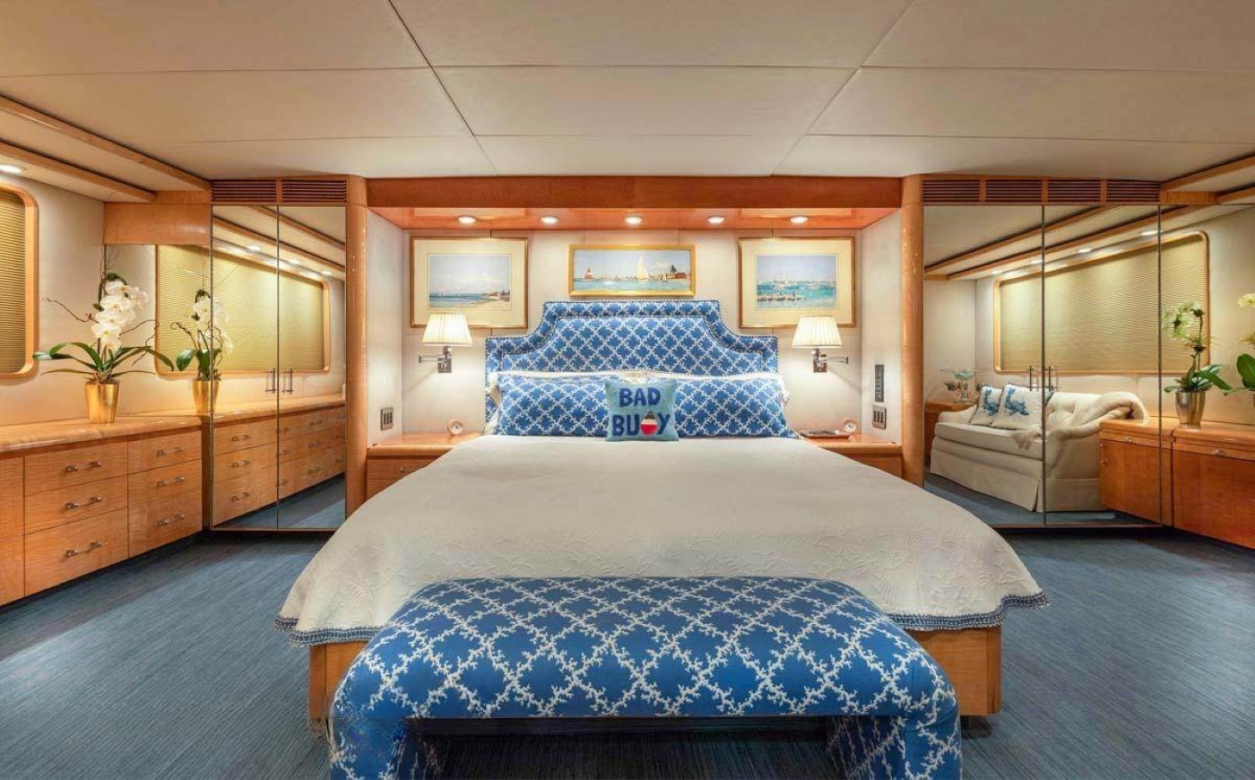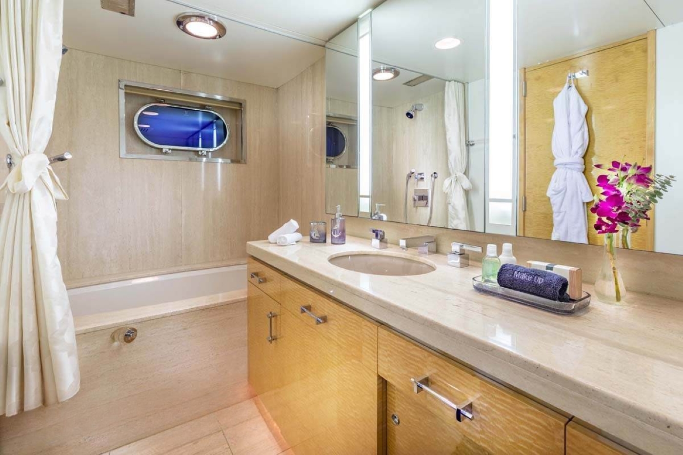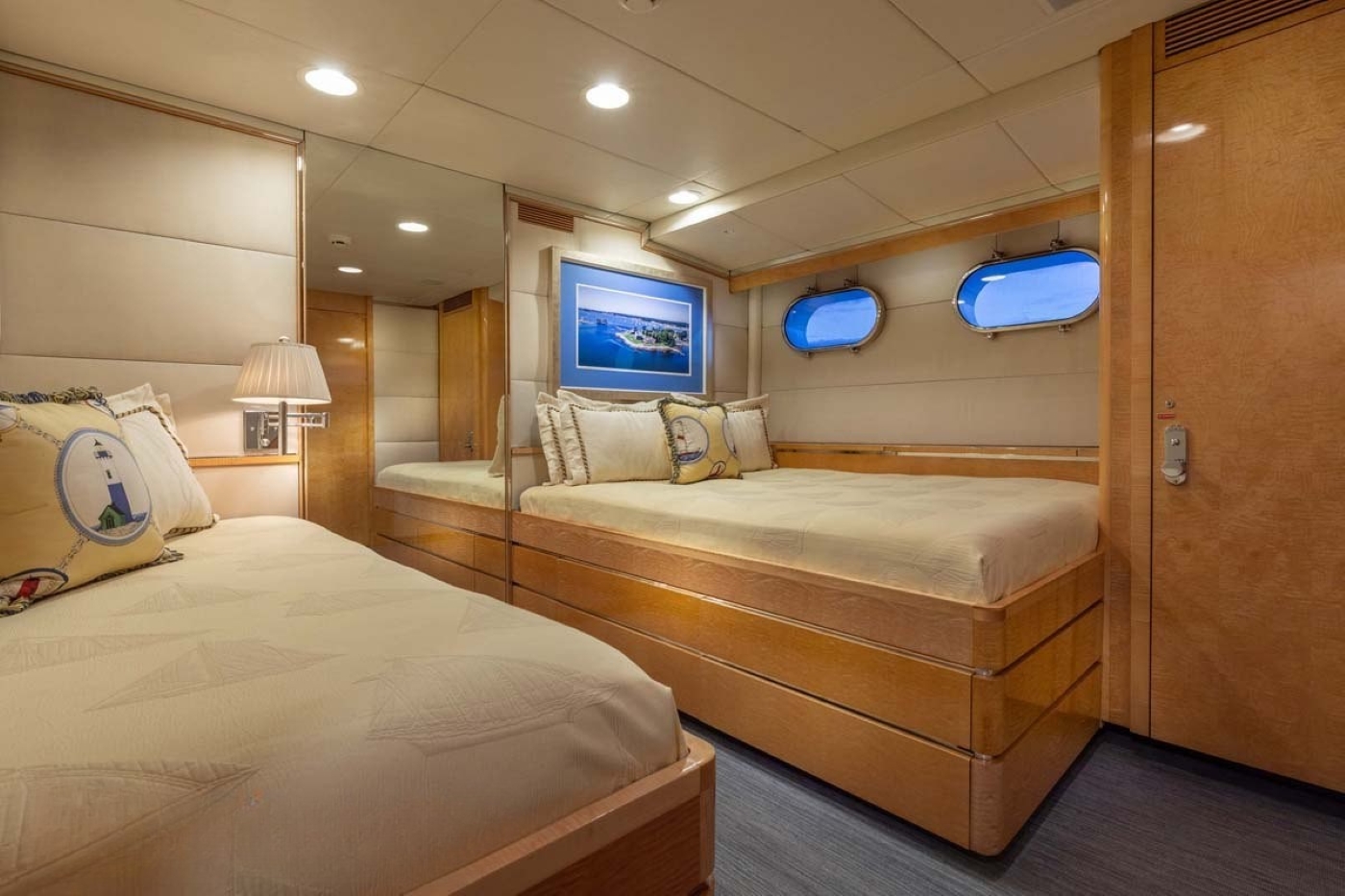 This displacement superyacht can accommodate 10 to 12 guests in five beautiful staterooms, all of which have their own ensuite bathrooms and private Spa Pools bathtubs. The staterooms also boast good entertainment centres, including flat-screen satellite TV, DVD and CD player as well as iPod-friendly connections.