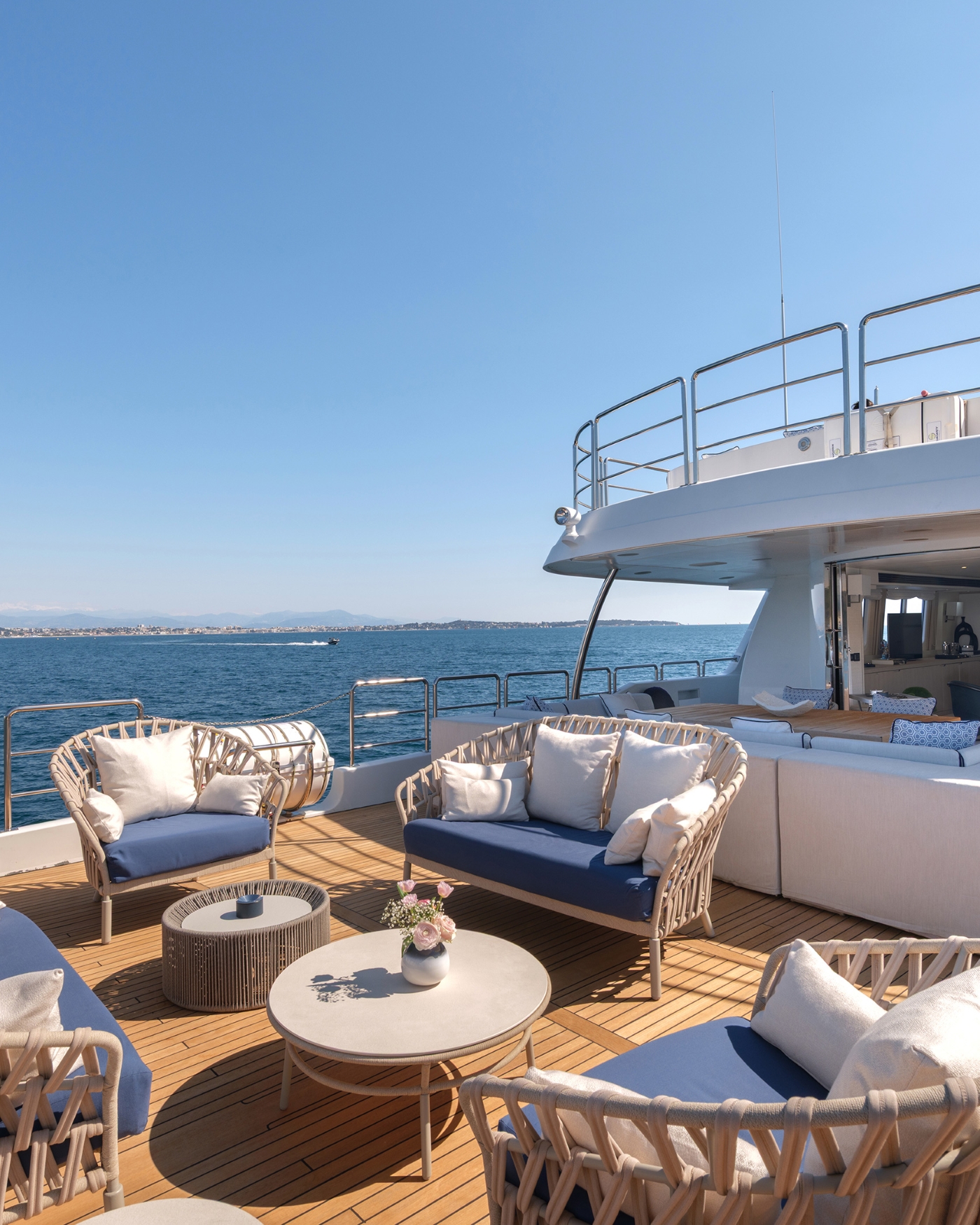 Motor Yacht SENSEI has a classic exterior style but now boasts a very cool and contemporary interior with modern equipment and luxurious facilities. SENSEI offers two comfortable indoor living areas and excellent deck space including alfresco dining areas on the upper aft deck and the sundeck. The sundeck also boats a large sunbathing area with cushions and shaded seating under a stylist mast.