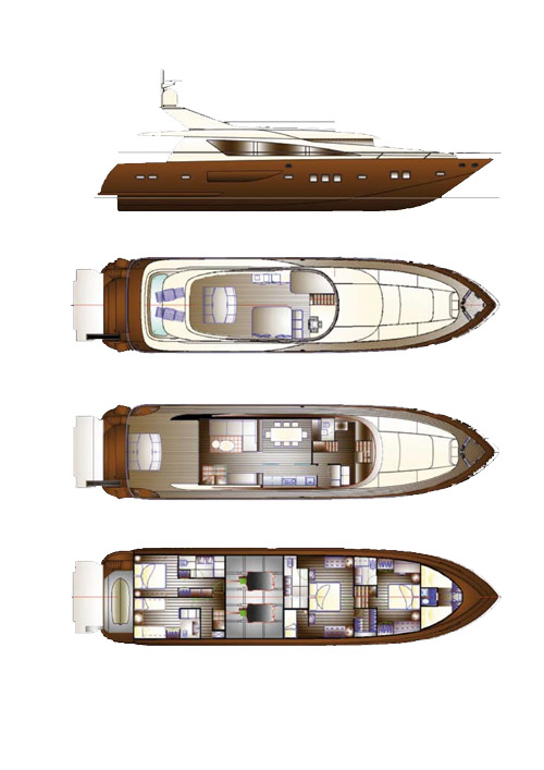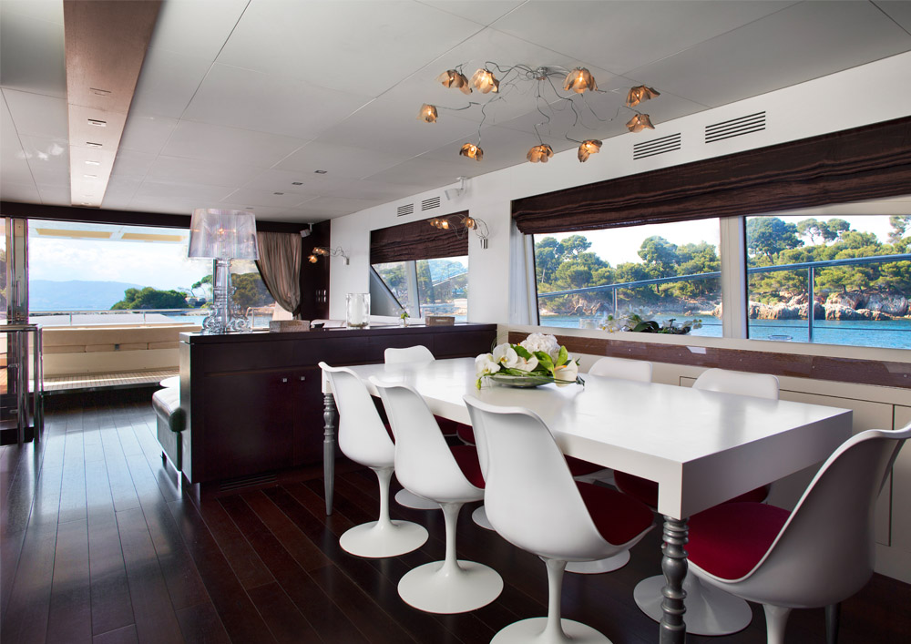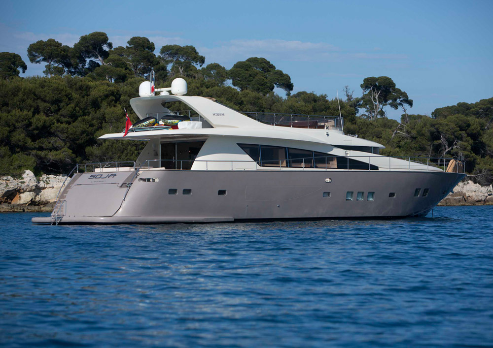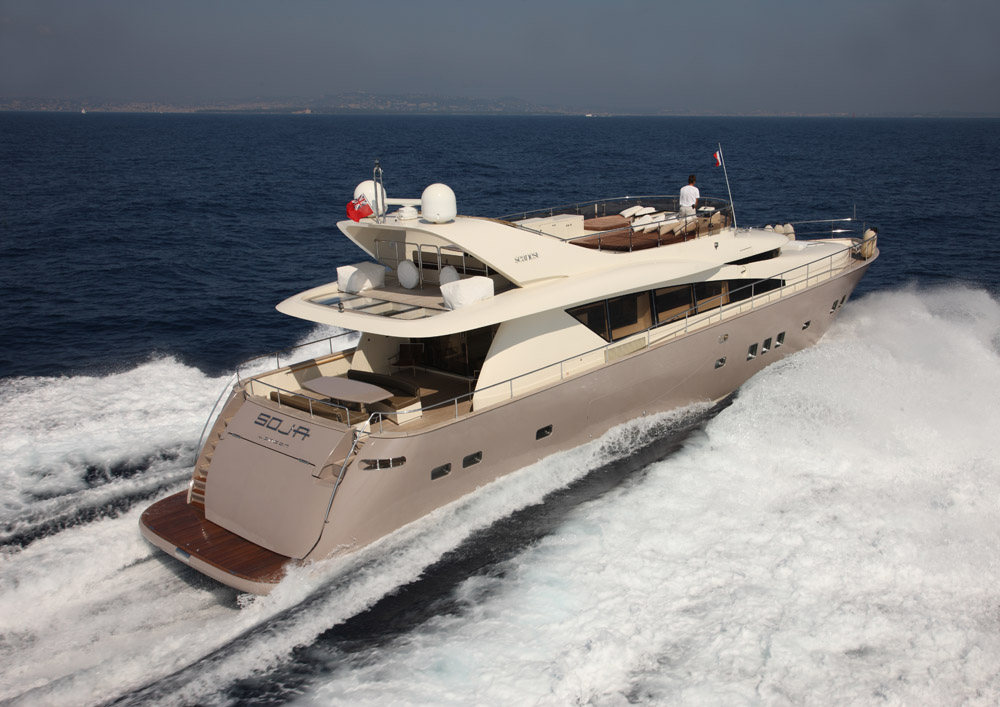 SOJA has an interior with an elegant atmosphere, a refined touch and cutting edge design. At 25,6 meters in length and a planning hull, she is able to cruise at speeds of 23 knots. SOJA has all comforts and performances of her category, with the addition of a special accuracy for interior design and space enhancement. She was nominated for innovation and practicality trophies by the 2008 World Yacht Trophies.