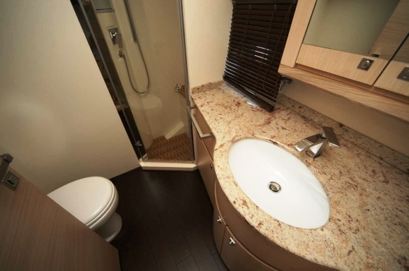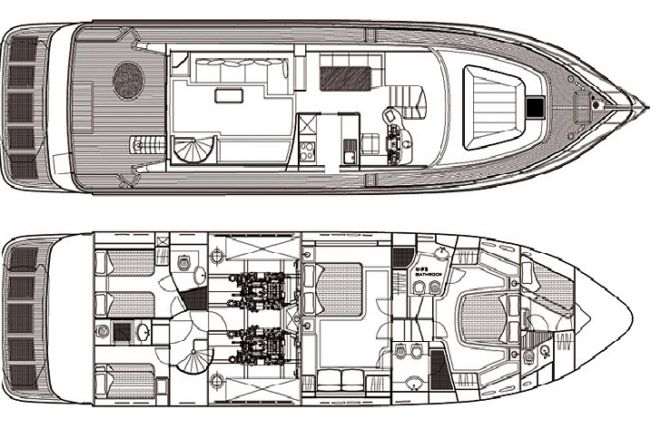 Motor yacht TIVELLA has 2 x 1360hp MAN enabling her to attain speeds of 27-33 knots. The VZ68 is elegant but essential in style. The distribution of her exterior has been design to maximise space. Motor yacht TIVELLA’s interior has a careful selection of materials enhancing her beauty including fine wood and marble and leather upholstery.