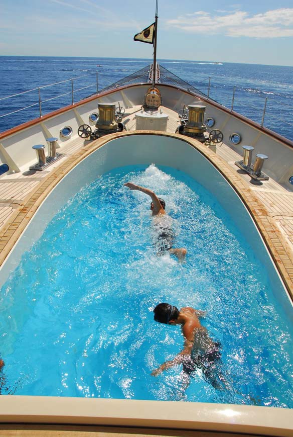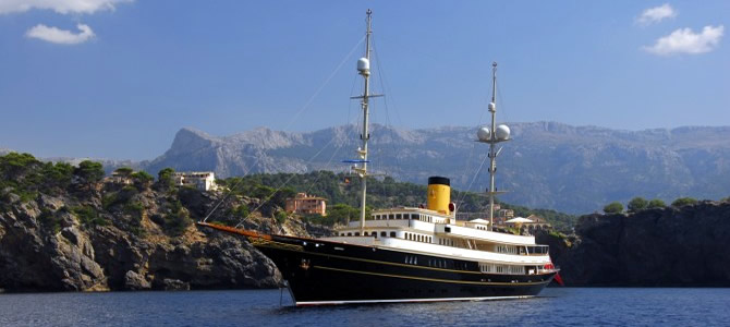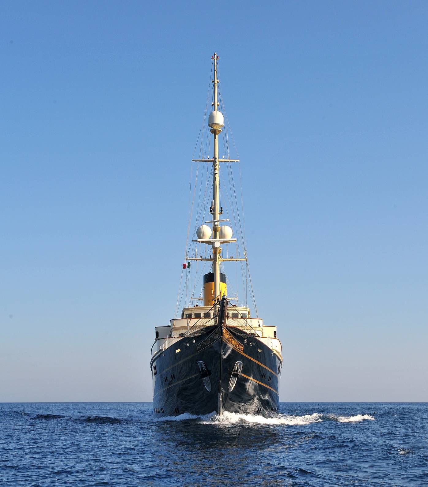 Motor yacht NERO was inspired by the “Corsair” series of yachts owned in the early part of the last century by the financier J.P.Morgan. As a way of preserving the yachts sleek lines, NERO has an 18ft side hatch for guests to climb in and out of the water instead of a swim platform or transom at the aft of the yacht. The stylish motor yacht NEMO is thought to be owned by a Turkish national.
