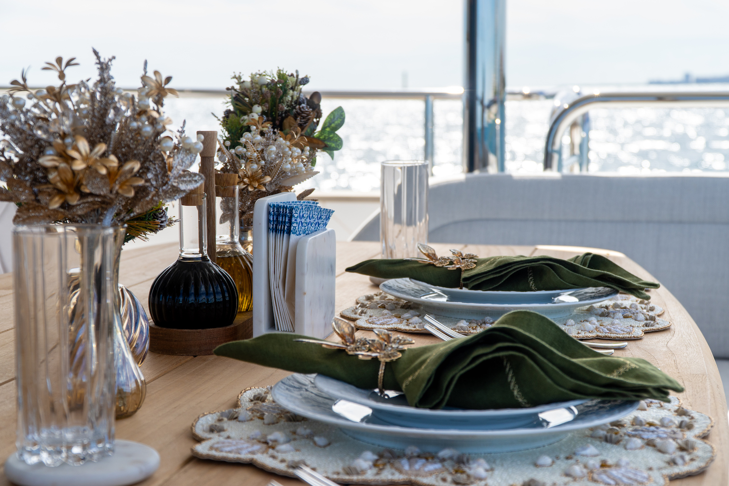 The furnishings combine comfort and elegance — plush seating, refined textures and subtle accent pieces create a welcoming yet luxurious environment. At anchor or on the move, the ambiance remains light, calm and tailored to discerning tastes.