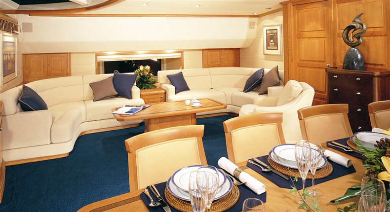 The yacht's wider design collaboration came from Alloy Yachts and Dubois Naval Architects. The formal naval architect intellectual property are the products of Alloy Yachts. Sailing Yacht NUBERU BLAU received her stylish interior designing from the interior design skills of Redman Whiteley Dixon. Built by Alloy Yachts the vessel was fabricated in the recognised yachting country New Zealand. She was successfully launched in Auckland in 2000 before being delivered to the owner. Her core hull was built out of aluminium. The sailing yacht superstructure component is fabricated predominantly using aluminium. With a width of 8.69 m or 28.5 ft NUBERU BLAU has spacious room. She has a fairly deep draught of 4.15m (13.6ft).
