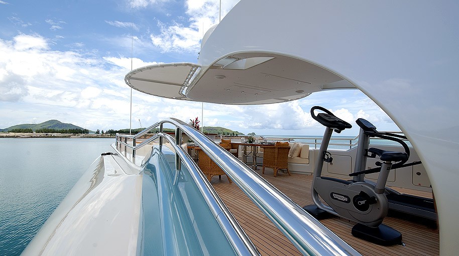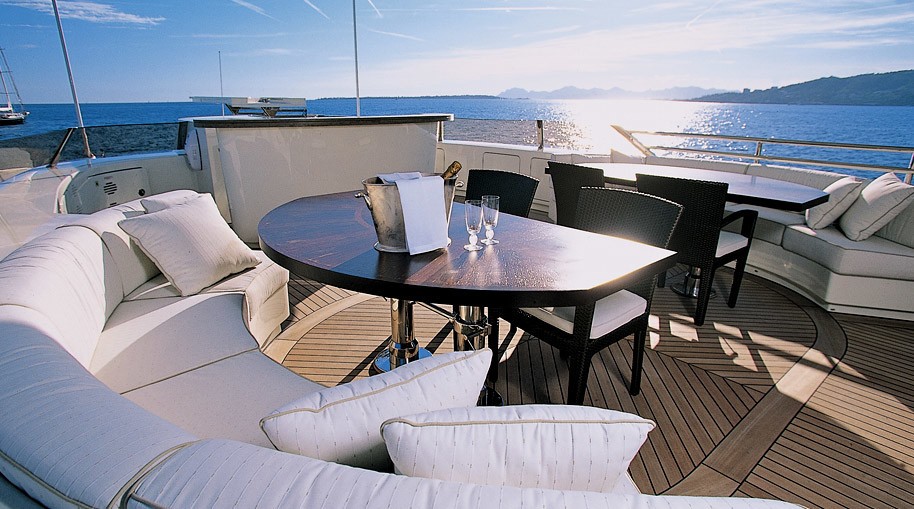 The yacht’s sun deck has a Spa Pool pool and a large sunpad area.