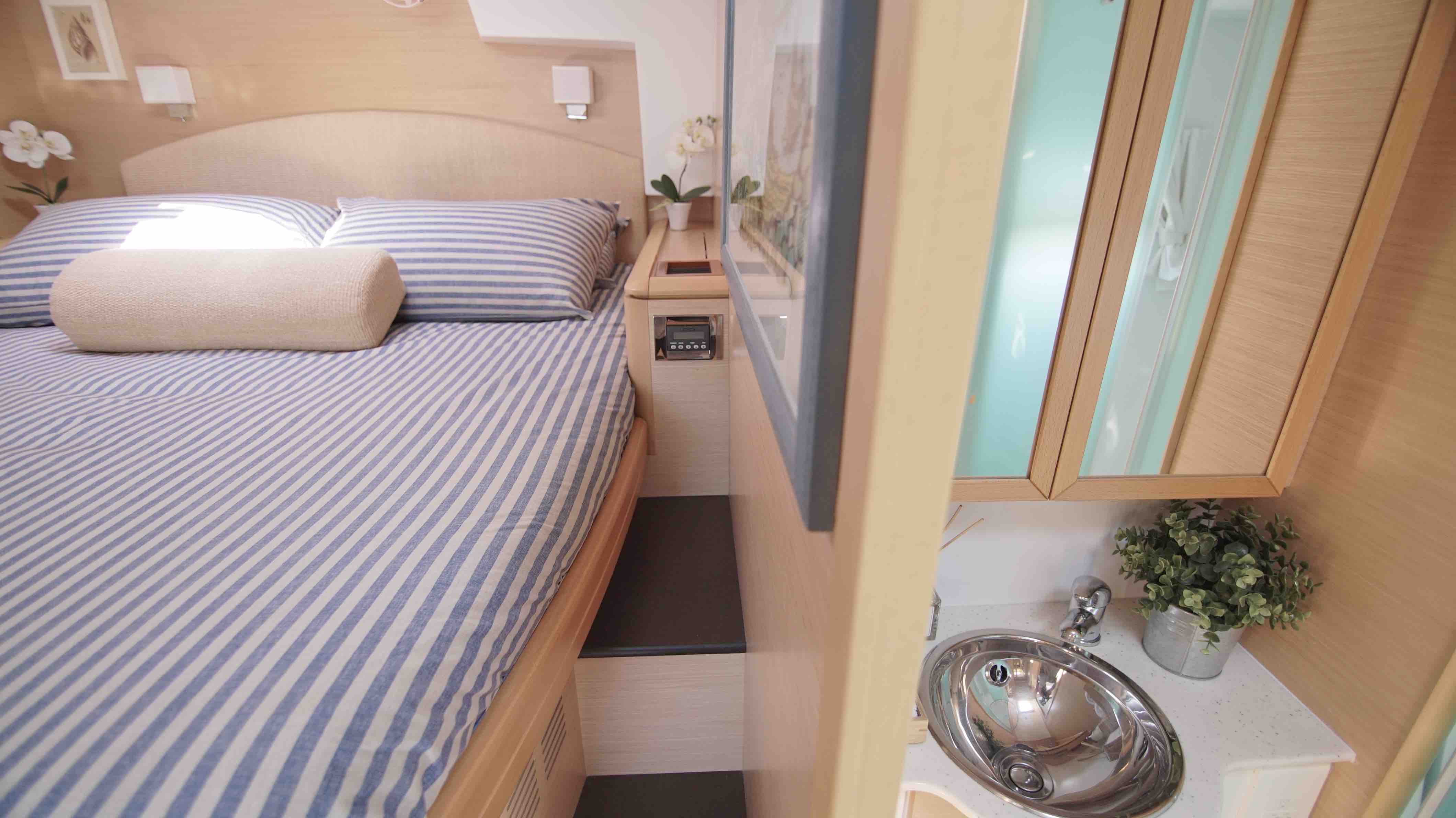 OMBRE BLU can accommodate a maximum of 6 guests in 3 cabins.
