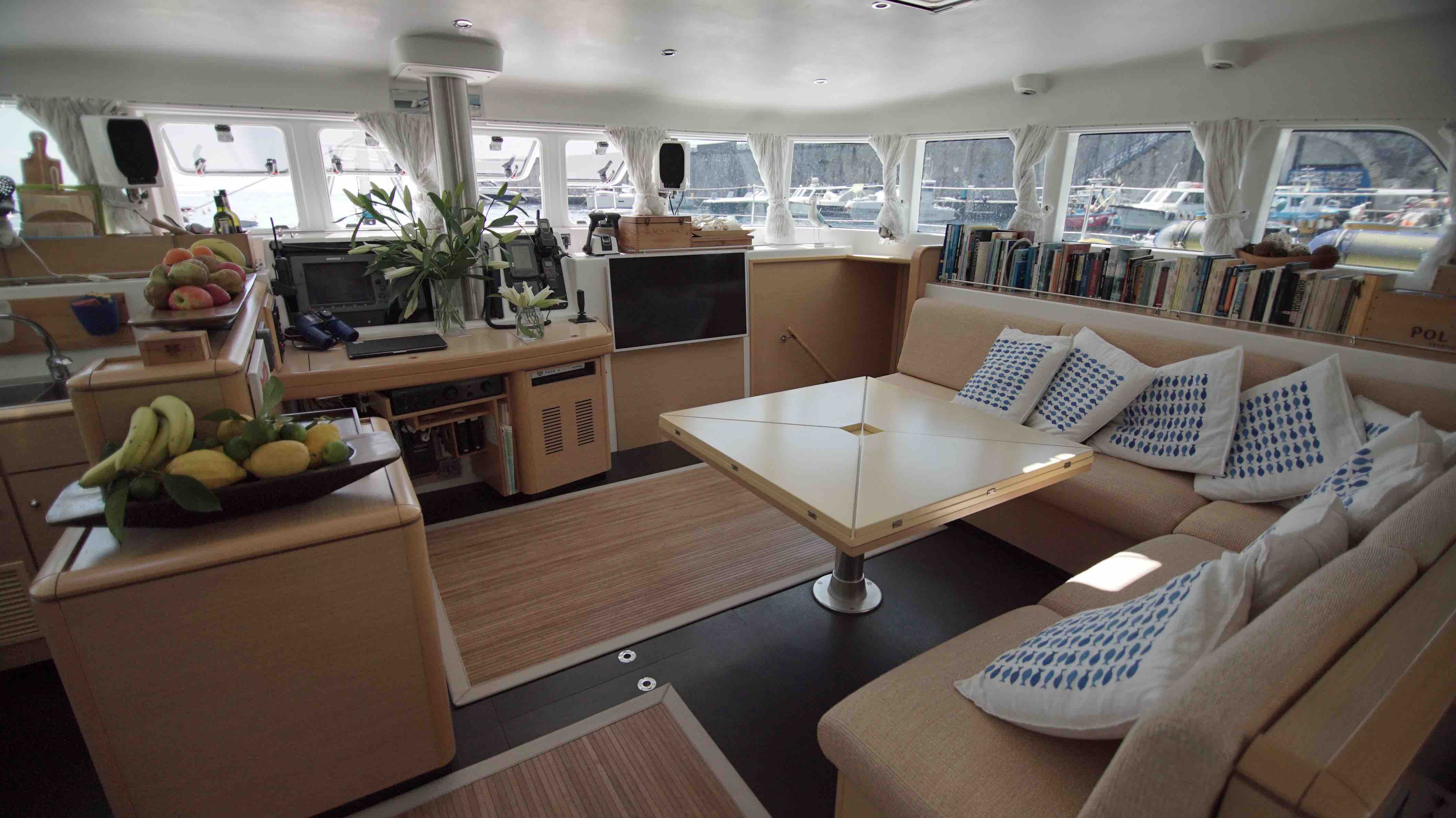 OMBRE BLU [Italian for Blue Shadows] is Lagoon 500 that was designed by naval architects Marc Van Peteghem and Vincent Lauriot Prevost using the latest advances in modern design. Her speed and seaworthiness are outstanding. The Lagoon 500 design uses light oak Alpi woodwork and laminated wenge floors to give a modern and relaxing feel. Wide sweeping windows provide a spacious and light area in the salon with beautiful panoramic views.
