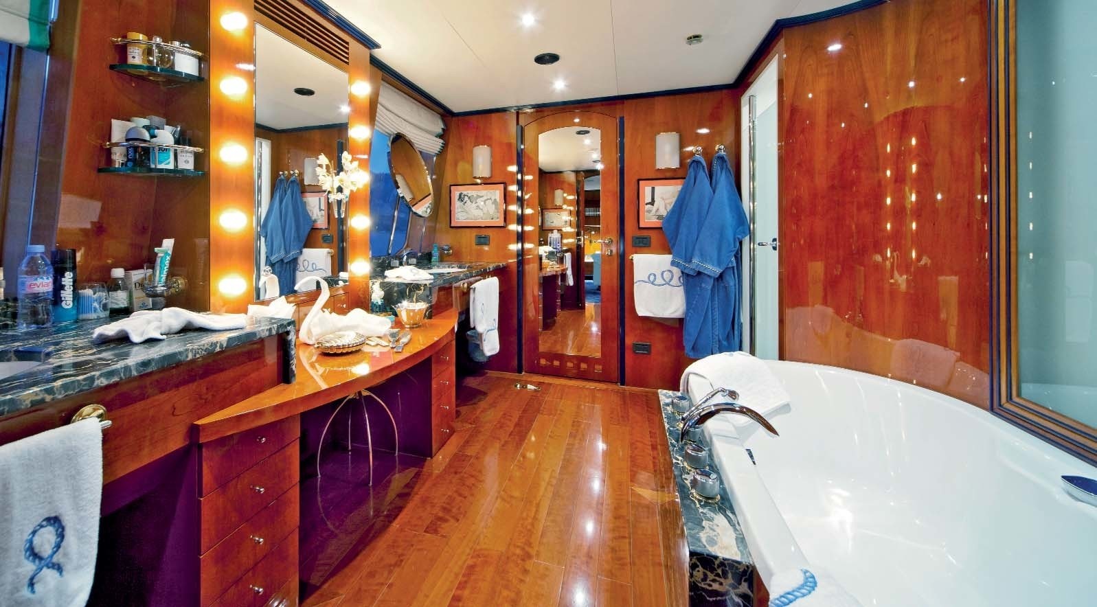 Gerhard Gilgenast was the naval architect involved in the professional nautical plans for ONTARIO. Also the company Gerhard Gilgenast skillfully collaborated on this undertaking. Interior designer Danielo Silvestrin was charged with the creative internal ambience. Created by Lurssen Yachts this yacht was built in the recognised yachting country Germany. She was successfully launched in Bremen in 1993 before being delivered to the owner. Her hull was built out of steel. The motor yacht main superstructure is made predominantly with aluminium. With a beam of 9.6 m or 31.5 ft ONTARIO has spacious room. A shallow draught of 2.71m (8.9ft) selects the number of worldwide marinas she can enter, contingent on their minimum depth at low tide. She had refit improvement and changes undertaken in 2001.