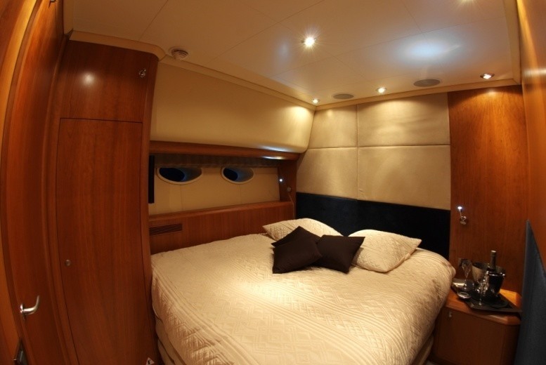 On board ORACLE II there are four luxury staterooms. The master cabin is full beam at the aft and has a large dressing room/cupboard and private ensuite. The VIP cabin is forward, and the guest rooms (one double and one twin) are port and starboard. They all have their own private ensuites, and flat screen televisions with DVD players.