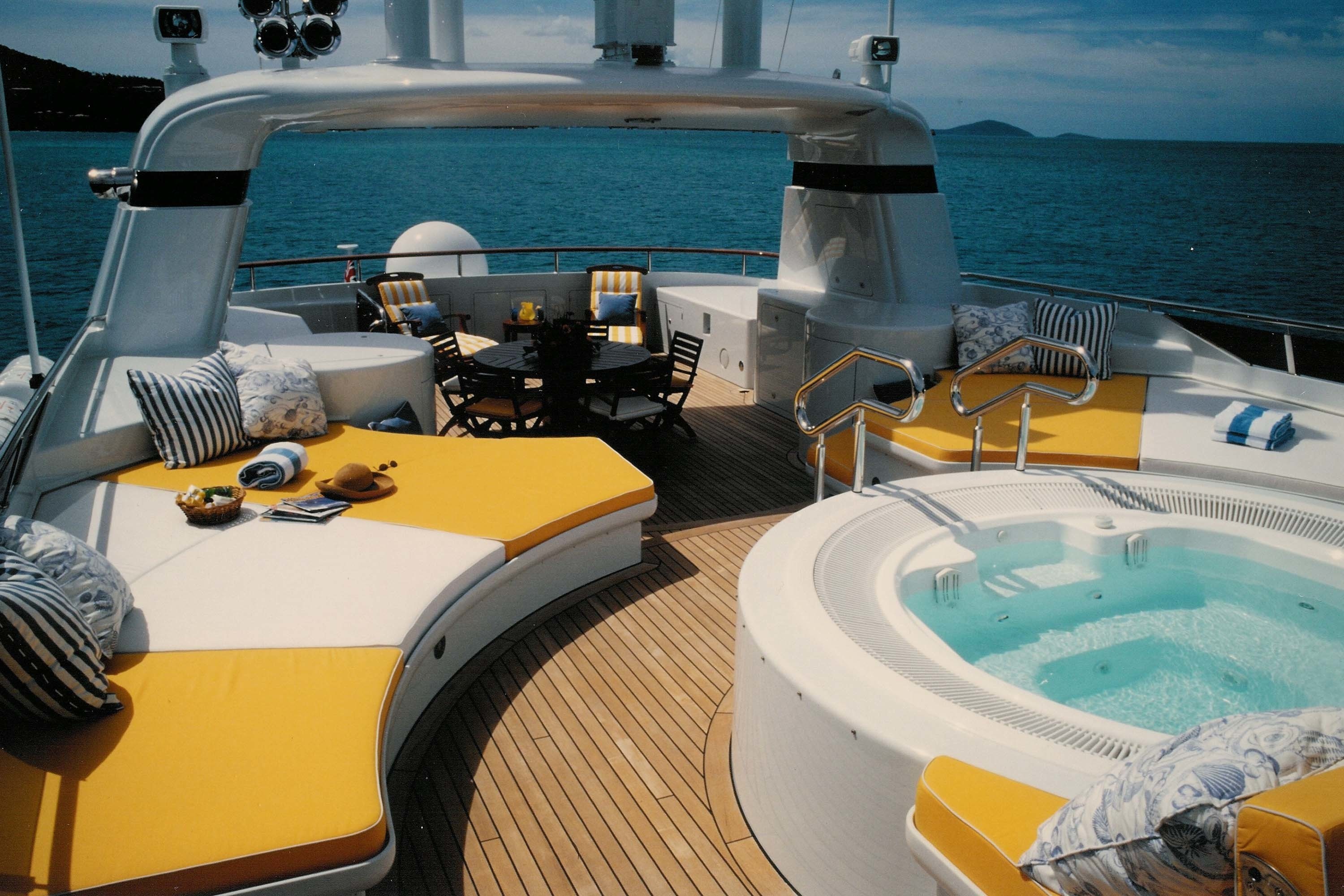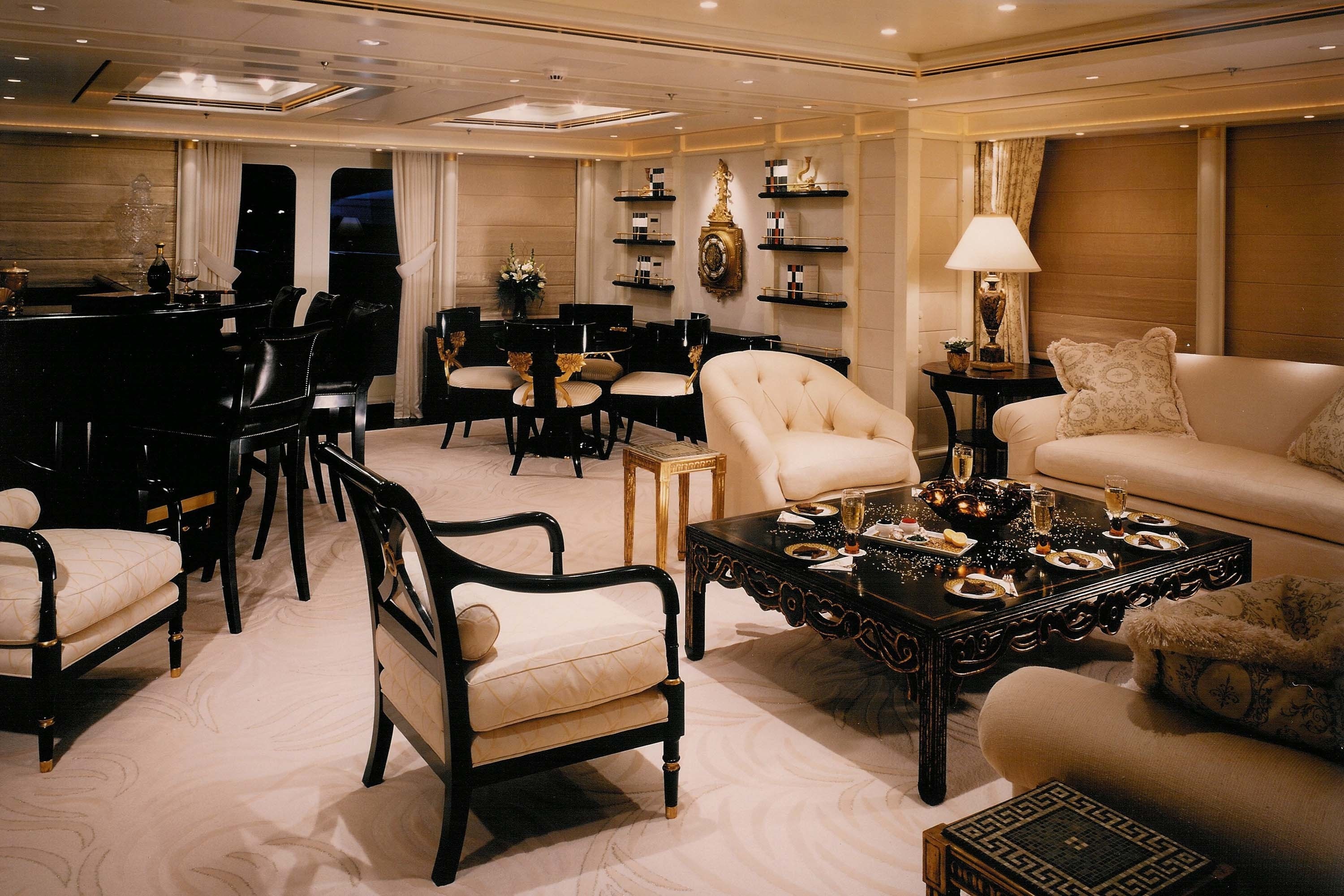 This yacht is powered with twin proven CATERPILLAR diesel engine(s) and can accelerate to a comparatively good maximum continuous speed of 16 knots. The main engine of the ship generates 1700 horse power (or 1251 kilowatts). Her total HP is 3400 HP and her total Kilowatts are 2502. Connected to her Caterpillar engine(s) are twin screw propellers. As for the yacht’s stabalisers she uses Vosper. This yacht’s efficient cruising speed is 13 knots which enables a range of 5000.
