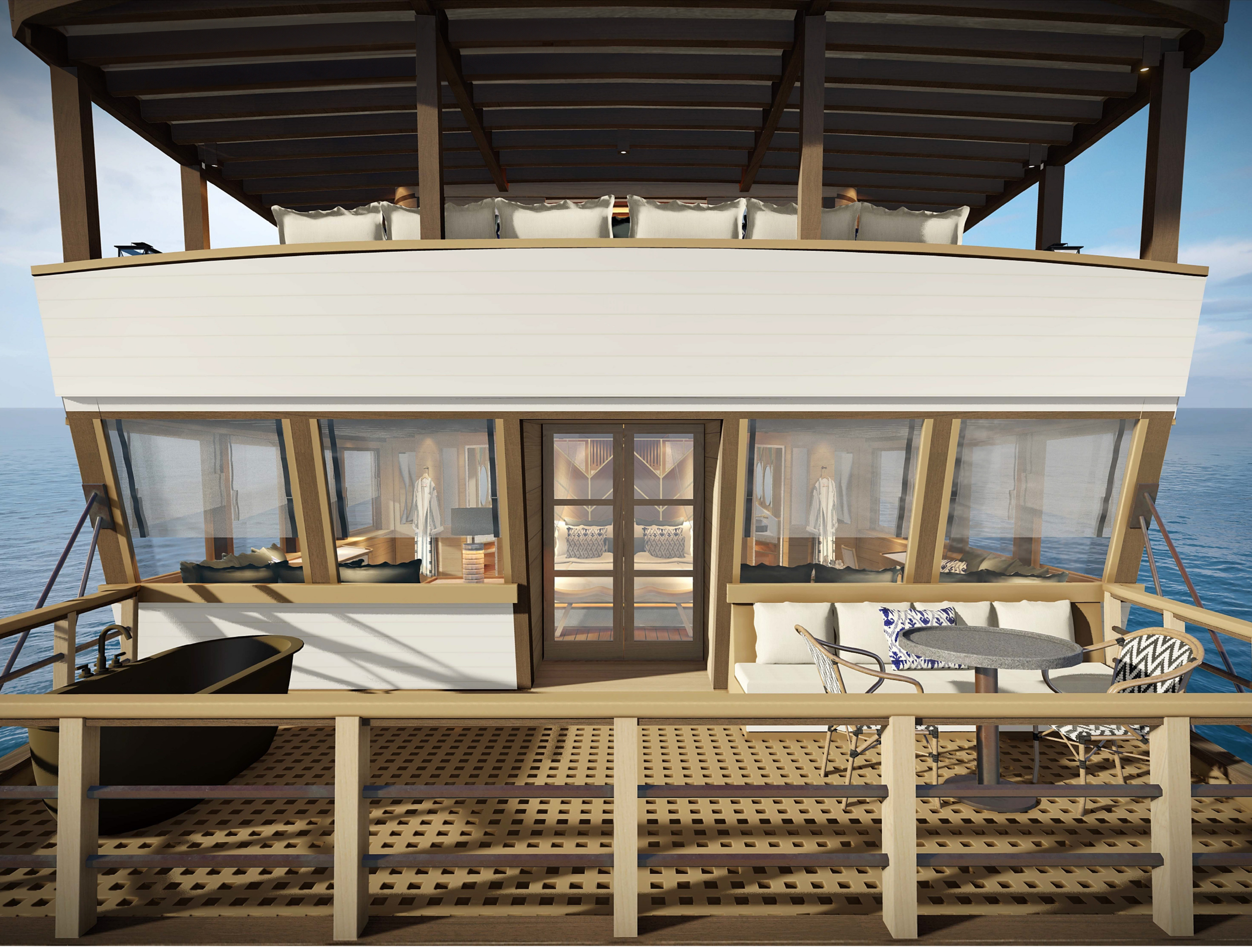 Guest Accommodation: ~1 Master Suite: 39 m² ~1 Queen Suite: 25 m² ~4 Deluxe Staterooms: 15 m² all with en-suite bathroom