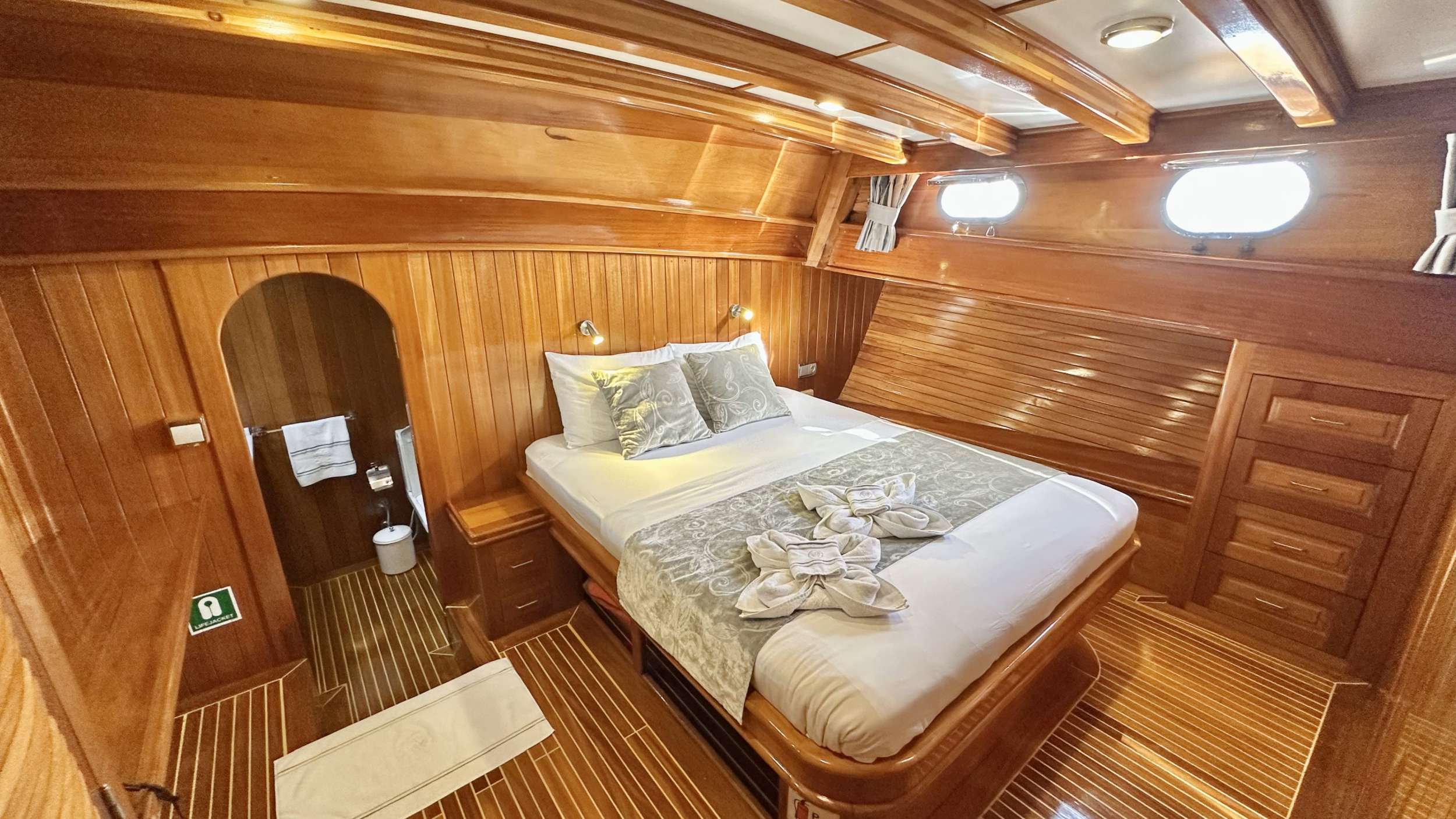 Parss accommodates up to 17 guests across 8 en suite cabins. ~ Master / Grand Master suite(s): king or double bed, sitting area, en suite bathroom ~ Double cabins (approx. 3–5): double bed layout, private en suite ~ Twin cabins (2): two single beds, each with en suite ~ Triple cabin (1): double + single configuration, en suite Every cabin is fully air conditioned and features private bathroom facilities.