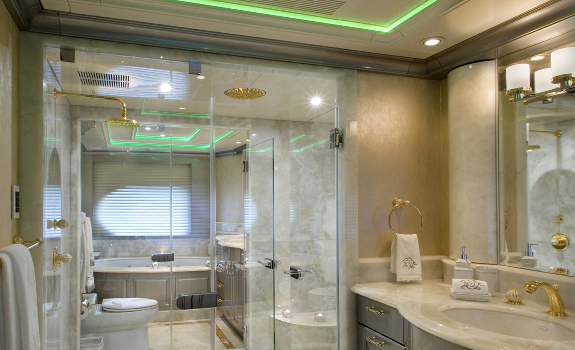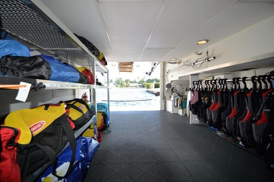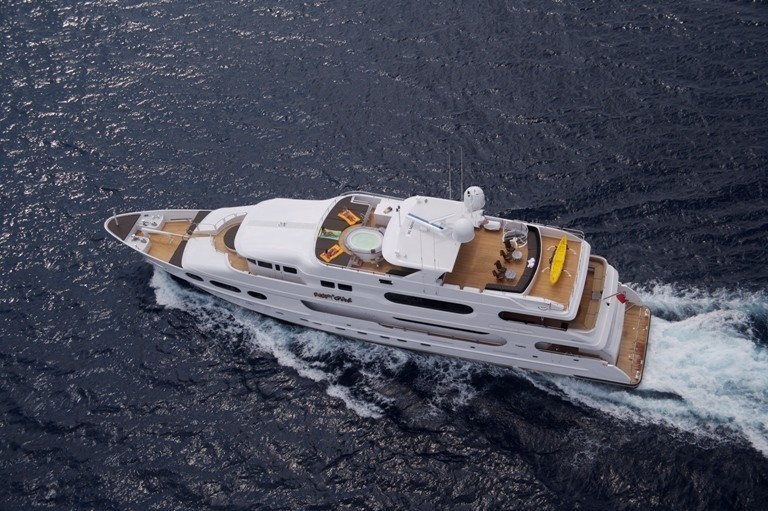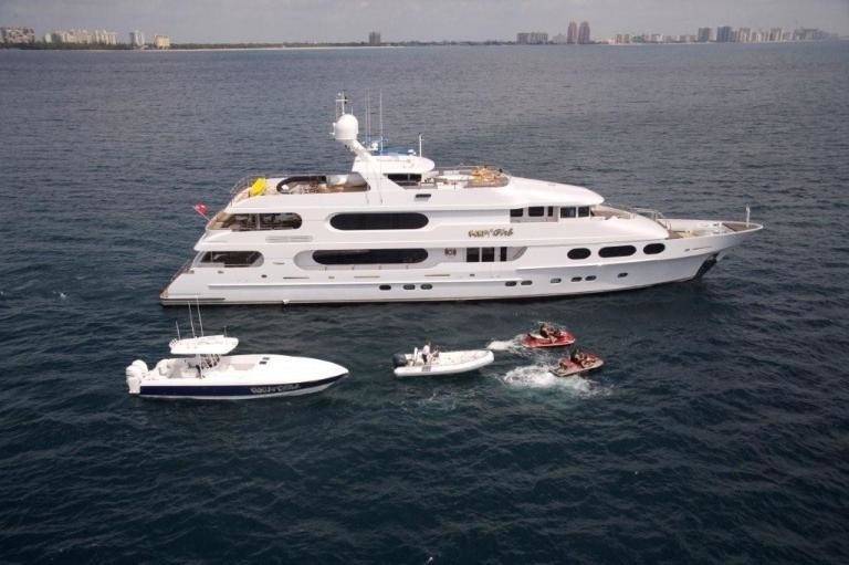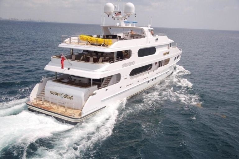The motor yacht makes use of twin responsive CATERPILLAR diesel engine(s) and can reach a industrious top end speed underway of approximately 18 knots. The engine of the yacht creates 2250 horse power (or 1678 kilowatts). Her total HP is 2250 HP and her total Kilowatts are 1678. Coupled to the PARTY GIRL engines are twin screw propellers. As for the yacht’s stabalisers she was built with Naiad Zero Speed. Her impressive cruise speed is 14 knots which makes a range of 4000.