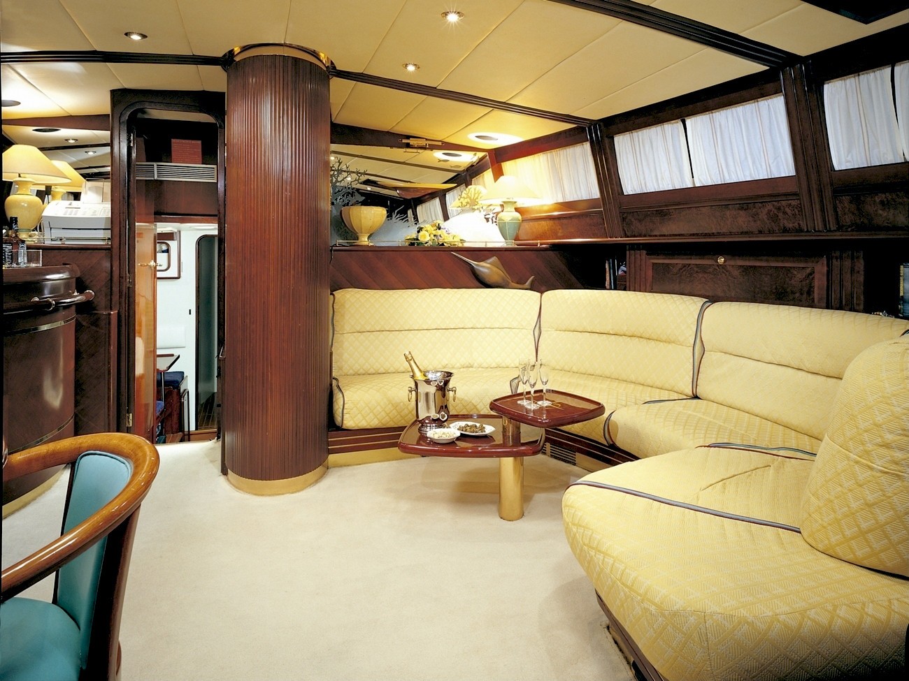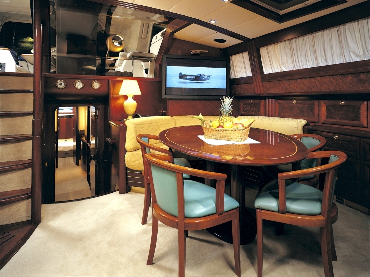 The yacht uses An Unknown Brand air conditioning. She has a teak deck.