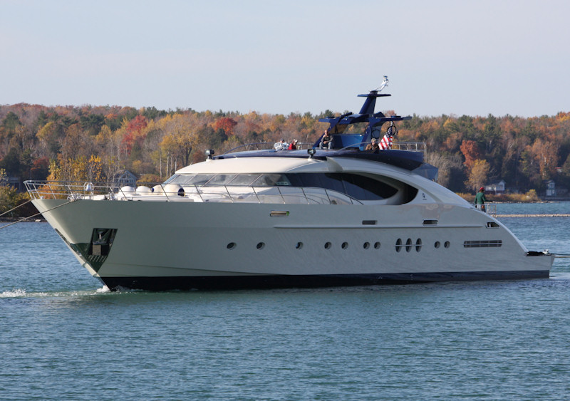 The 16V 4000 M90 DDEC engine installed in the motor yacht is made by MTU. She is driven by twin screw propellers. The main engine of the ship produces 3650 horse power (or 2723 kilowatts). She is equiped with 2 engines. The total thrust for the boat is 7300 HP or 5446 KW.