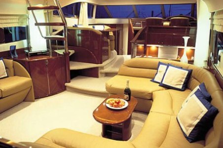 Lunch is served at your request on the fly bridge, aft deck or in the air-conditioned saloon. The barbeque, situated on the fly bridge, is often used to cook a sumptuous array of seafood, fish and meats. The magnificent Princess 65 Flybridge Yacht