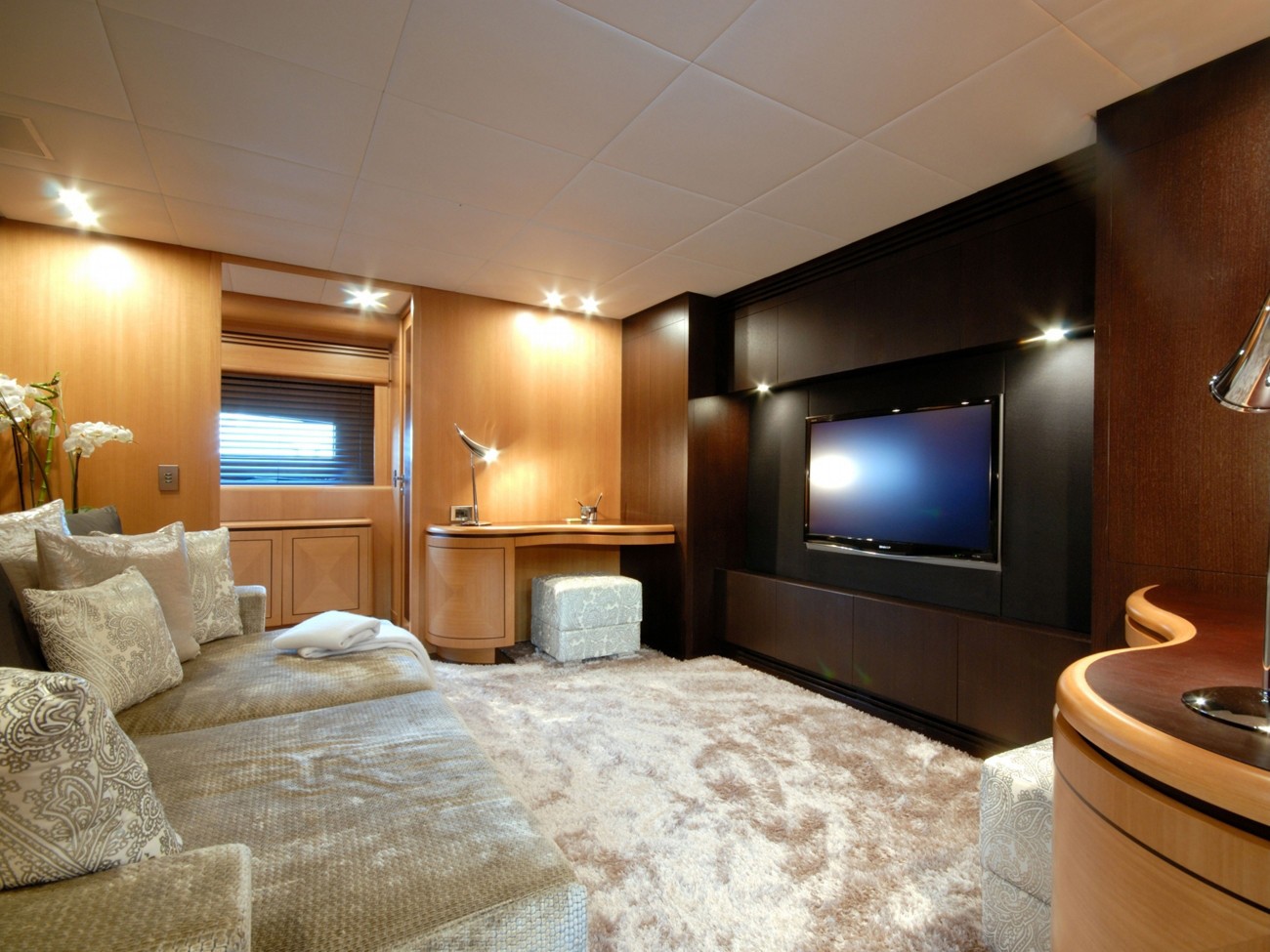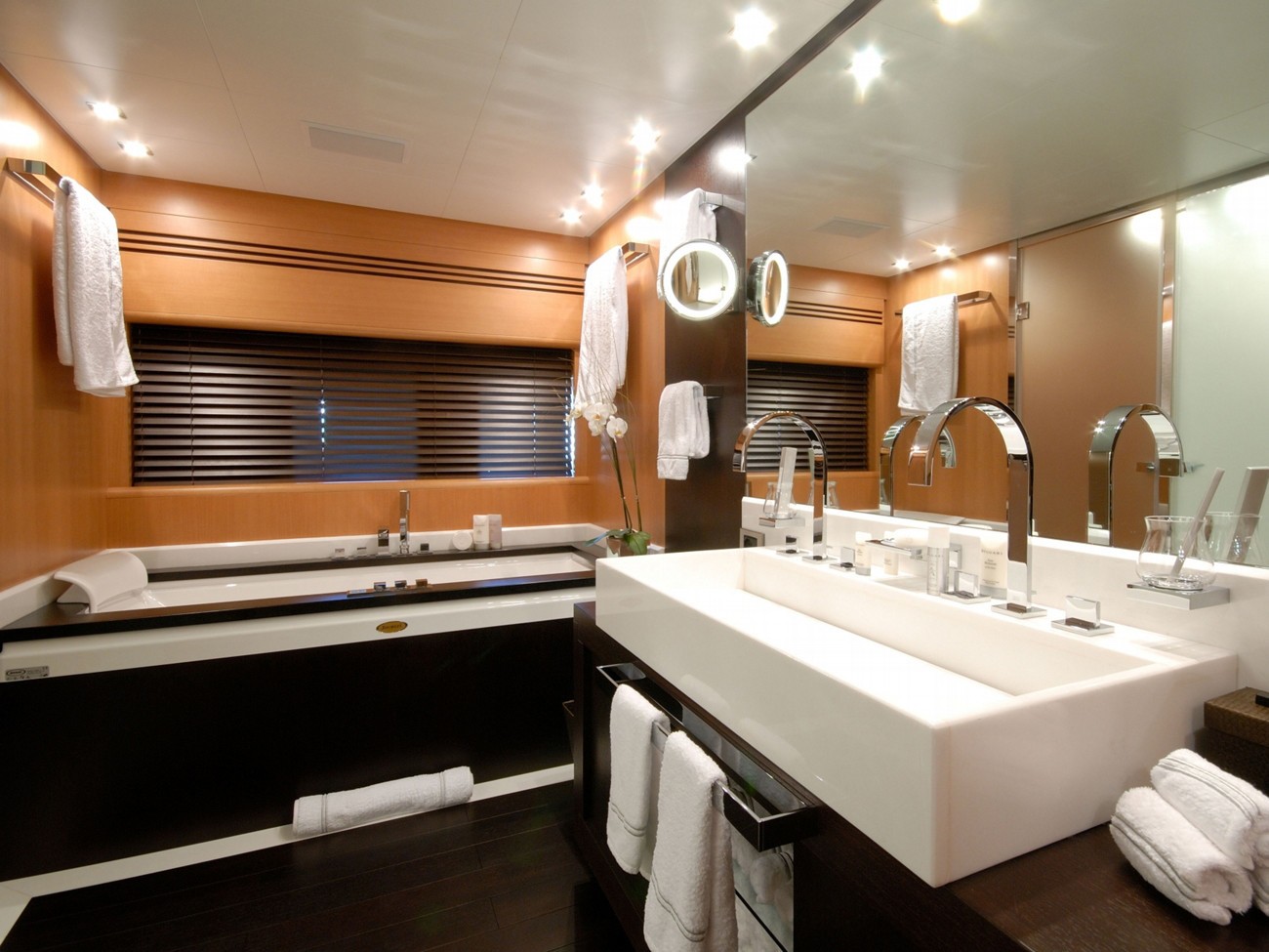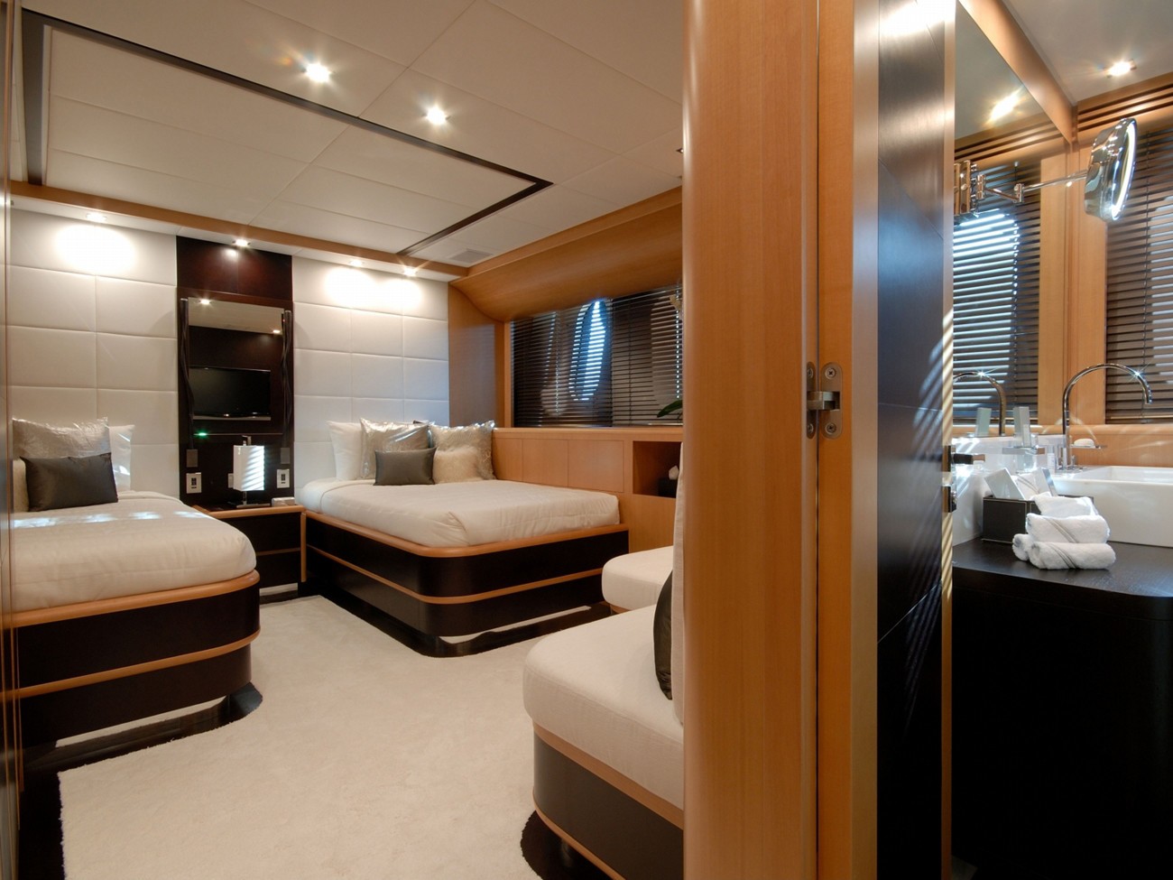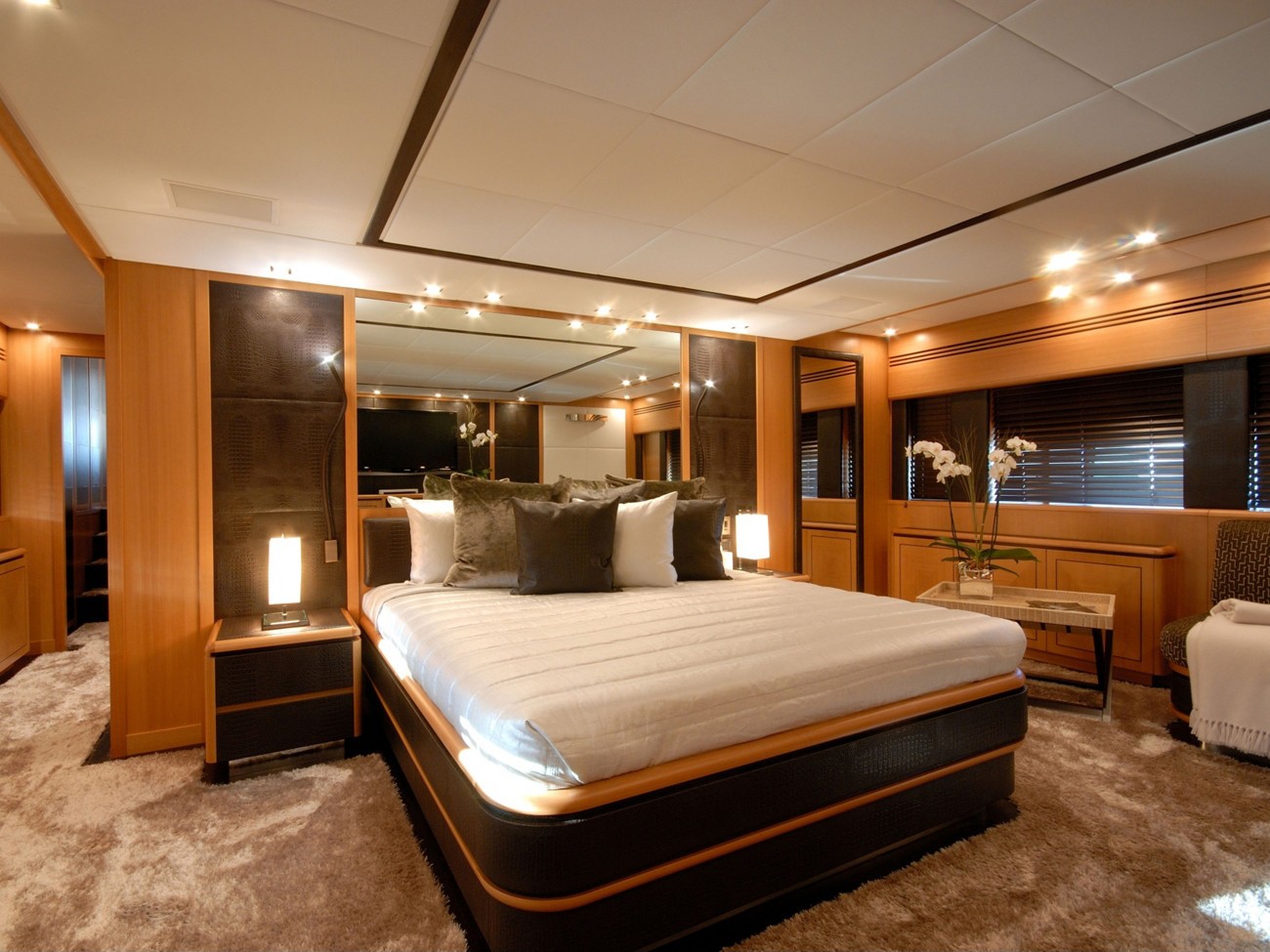 Having chambers for a limit of 12 visiting passengers spending the night, the PURE ONE accommodates them in style. The boat requires approx 8 capable crew members to run.