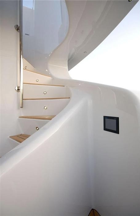 The 16V 2000 M93 engine powering the yacht is built by MTU. For propulsion PURE ONE has tripple water jets (kamewa). The main engine of the yacht creates 2400 horse power (or PURE ONE kilowatts). She is equiped with 3 engines. The combined power for the boat is 7200 HP or 5371 KW.