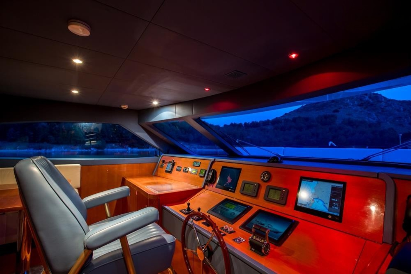 The Benetti motor yacht REBECCA V has a beam of 7.07m (23' 2") and a draft of 1.8m (5' 11"). The yacht is powered by 2 x CAT 885hp engines, with a maximum speed of 13 knots and a cruising speed of 10 knots. She is fitted with Najad stabilizers, for optimum comfort.