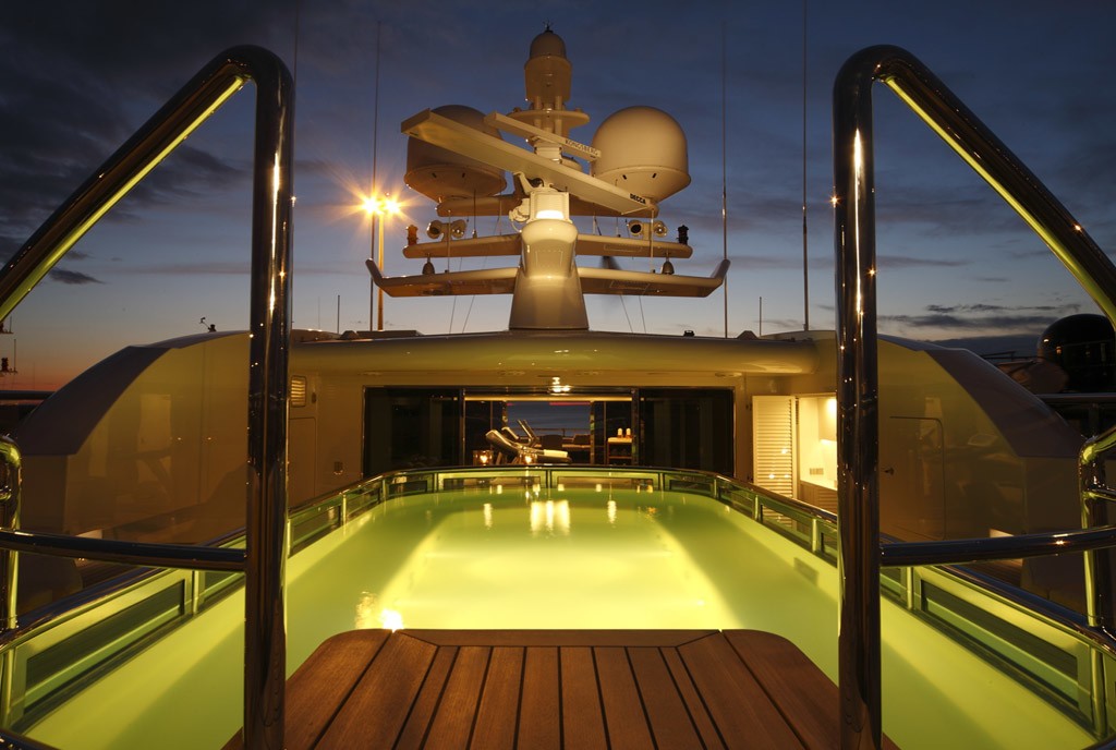 As the yacht was designed to have her own helicopter pad aboard, ROMA has the capacity to transport people and supplies to and from another place.