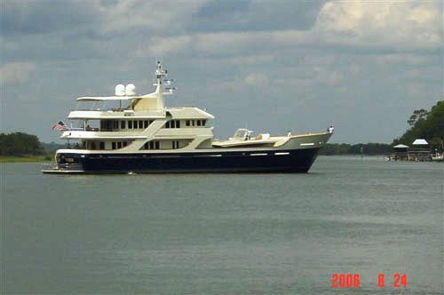 The yacht's wider design collaboration came from Dejong & Lebet. The technical naval architect drawings are a products of Dejong & Lebet. Motor Yacht RUSALINA EXP received her elegant interior designing from the interior design company of Luiz De Basto Designs. the United States is the country that Newcastle Marine constructed their new build motor yacht in. After official launch in 2006 in Palm Coast Fl the boat was then passed over to the proud new owner having completed sea trials and testing. Her hull was built out of steel. The motor yacht superstructure is made for the most part using aluminium. With a beam of 8.53 m or 28 feet RUSALINA EXP has fairly large interior. A reasonably shallow draught of 2.4m (8ft) selects the number of certain marinas she can visit, taking into account their individual depth at low tide.