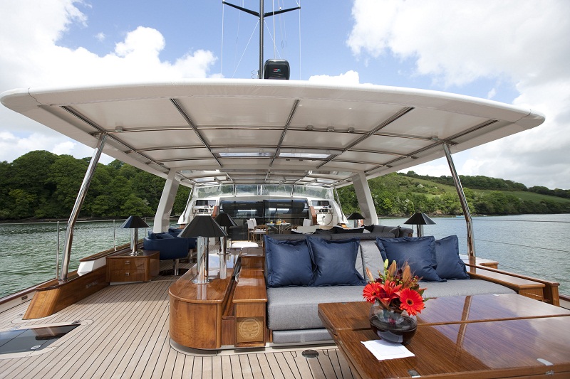 The social areas and master cabin on the Pendennis 32 metre sailing yacht Akalam are both of a substantial size and comparable with yachts of a much bigger scale and are complemented with an impressive 60 m2 covered aft deck space.