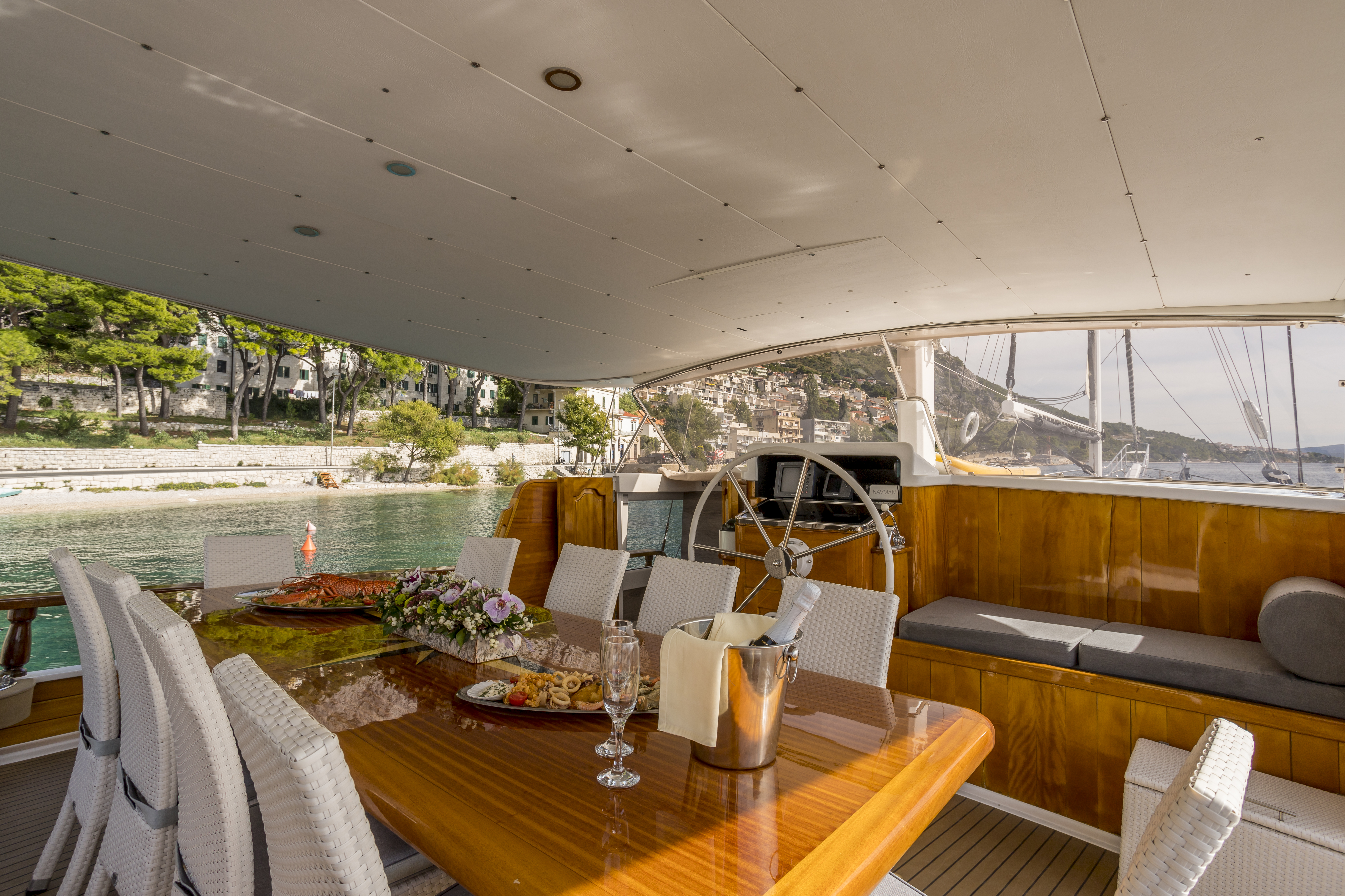 Luxury Gulet ANDJEO is a 27-meter (88.7ft) traditional sailing yacht, she accommodates up to 10 guests in 5 cabins. The yacht is based in Dubrovnik year-round.