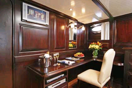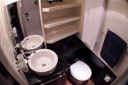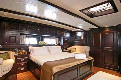 The yacht provides four very well appointed staterooms all with Satellite TV, DVD and Stereo as well as internet access point. The master cabin aft is split level and full beam with beautiful classical varnished panelling offset by light coloured furniture and an abundance of natural light. The VIP cabin has an awthwartship double bed to maximise space and light with this and the two twin cabins continuing with the same décor theme as the master.